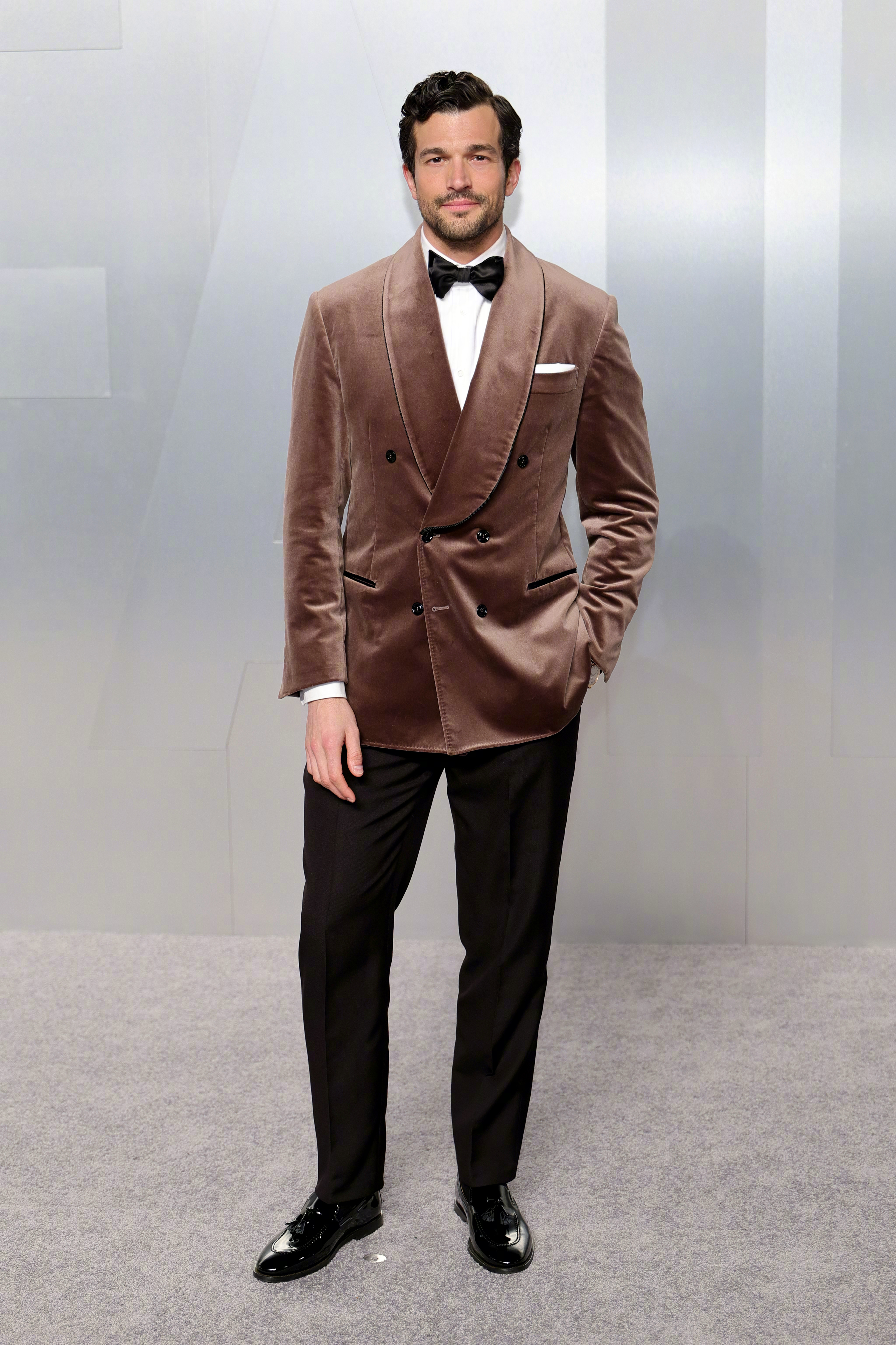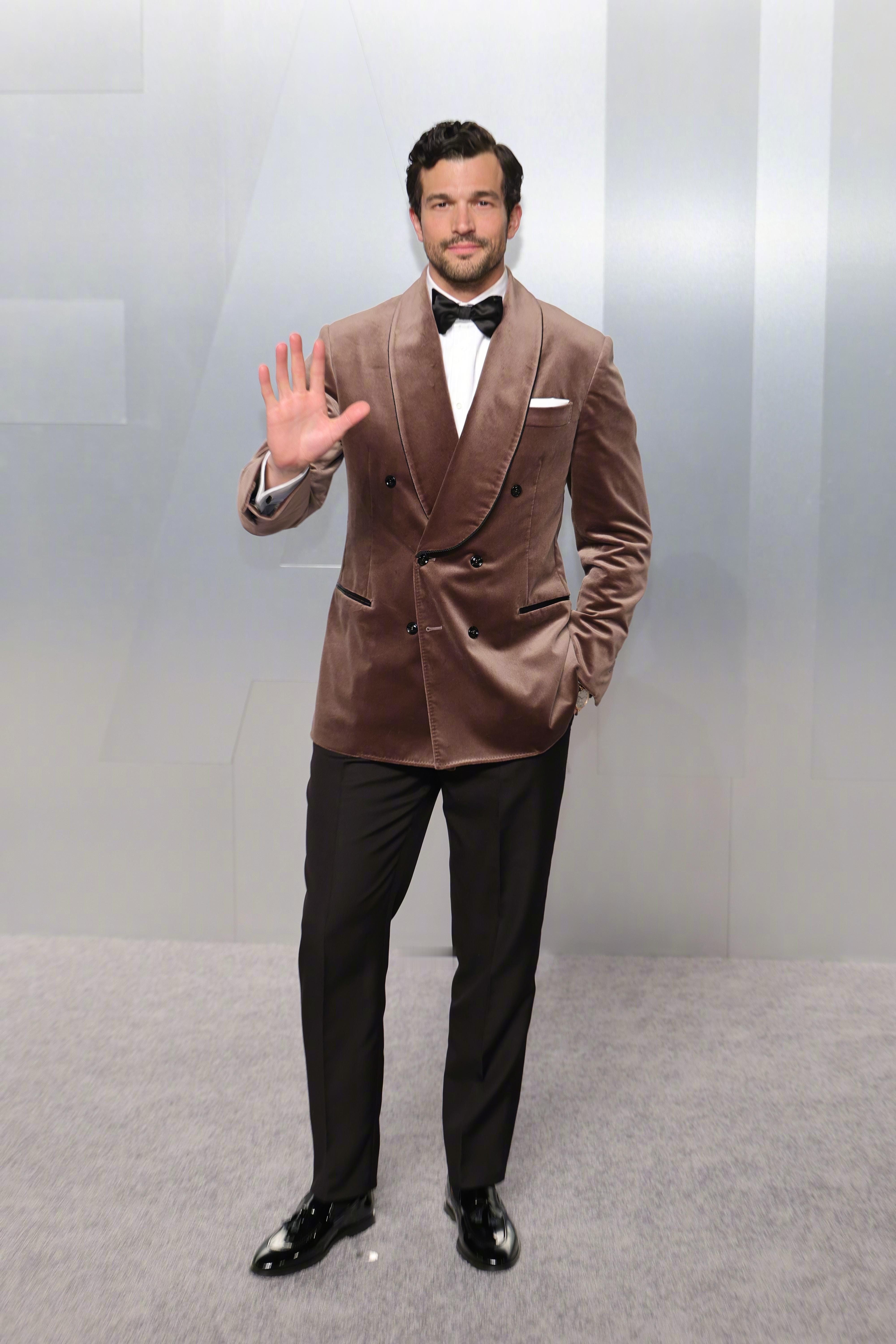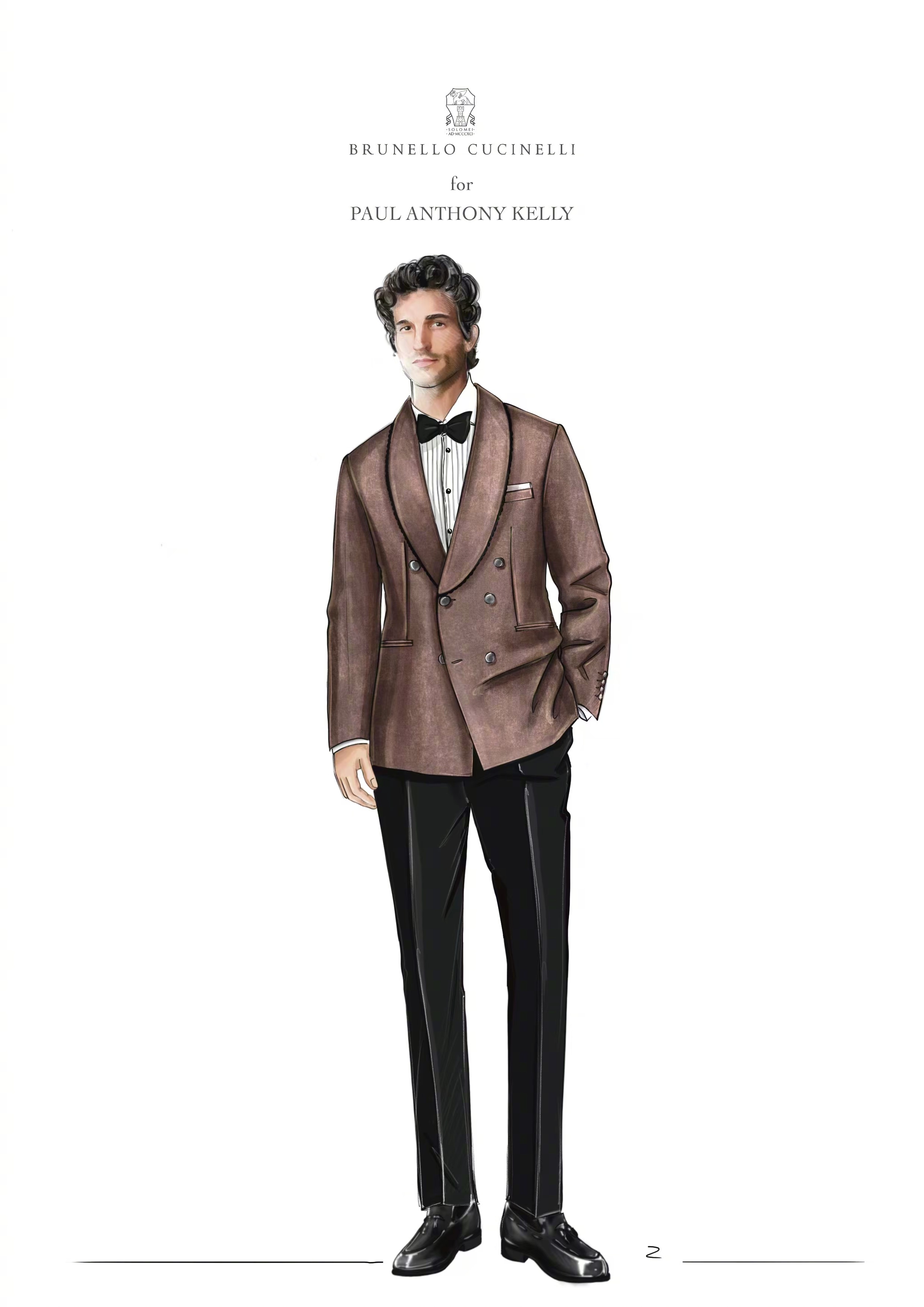 出席 Vanity Fair名利场奥斯卡派对的:《爱情故事(Love Story)》男星保罗·安东尼·凯利(Paul Anthony Kelly),身穿Brunello Cucinelli特别定制焦糖棕丝绒青果领礼服西装,搭配黑色真丝羊毛礼服长裤及鞋履配饰,这个颜色衬的人好高贵帅气。