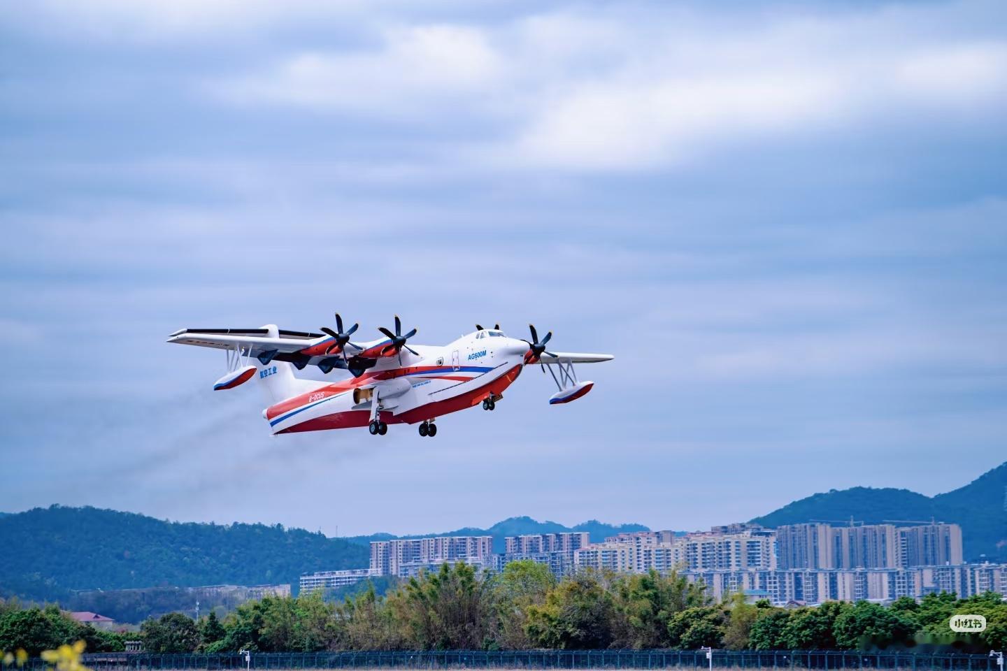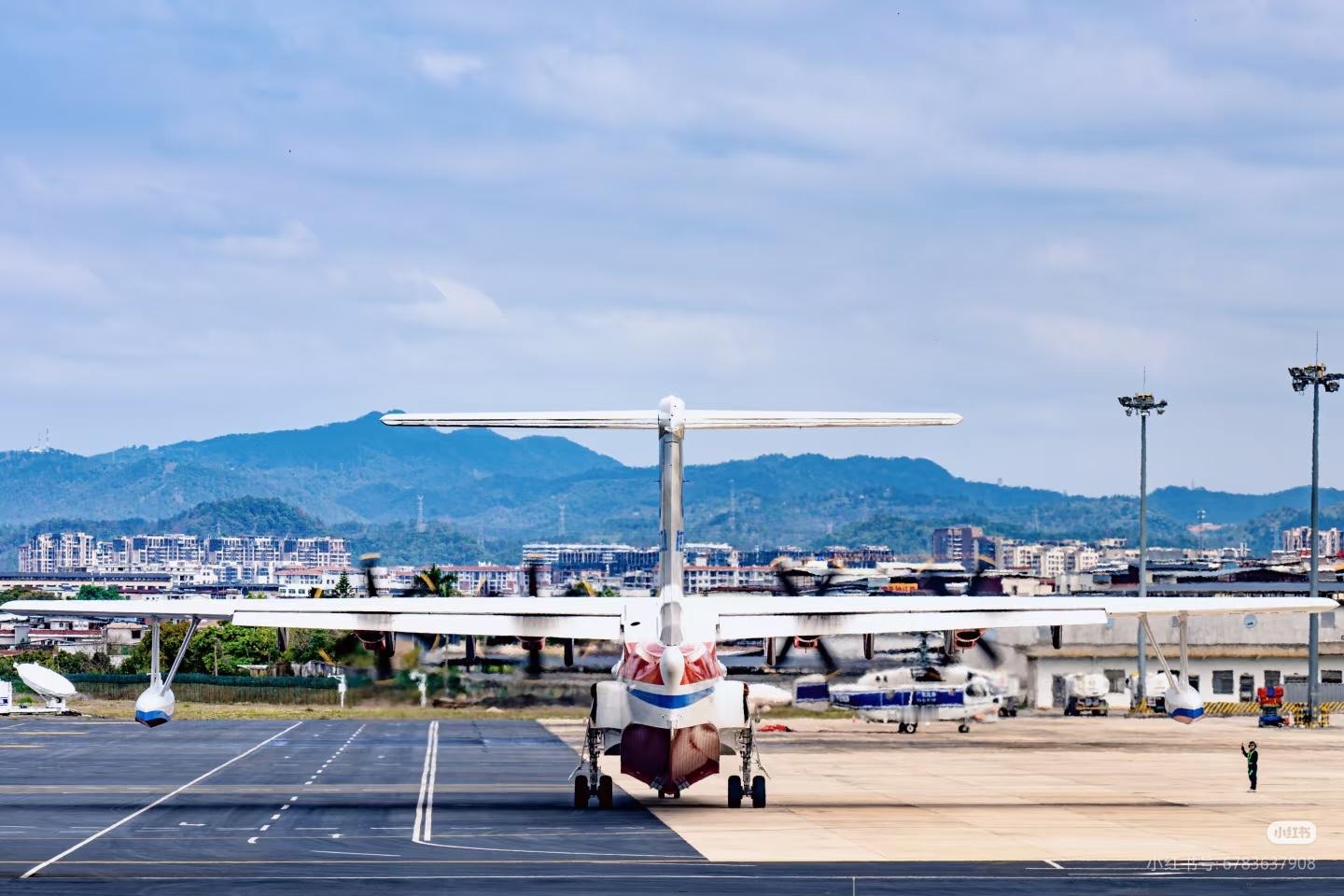 AG-600水上飞机近日飞到梅州,据说是推销展示: