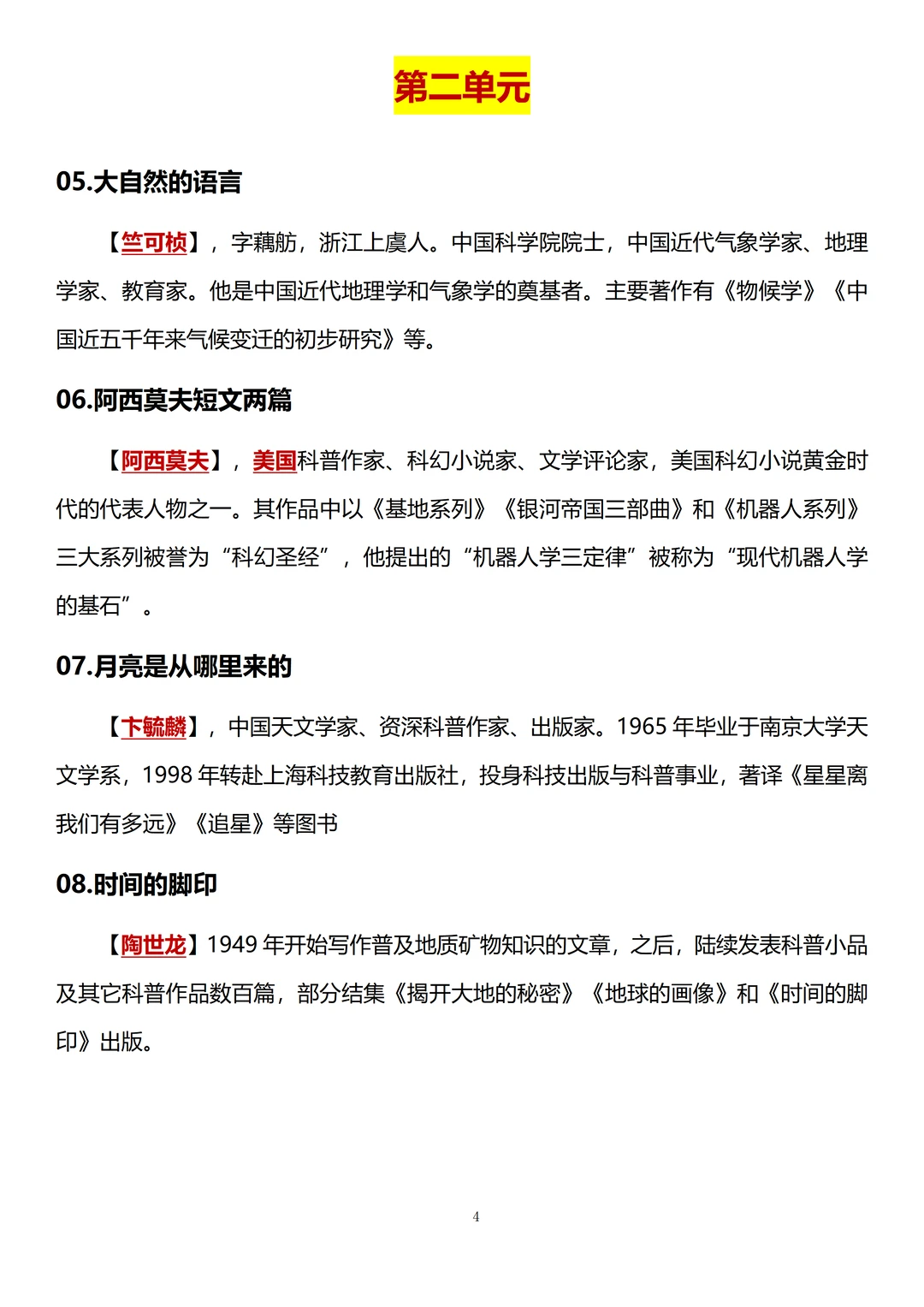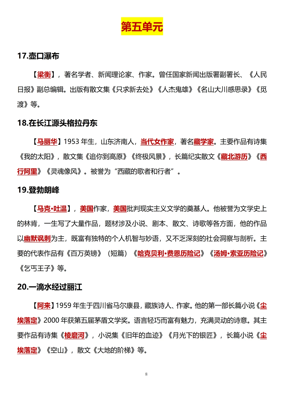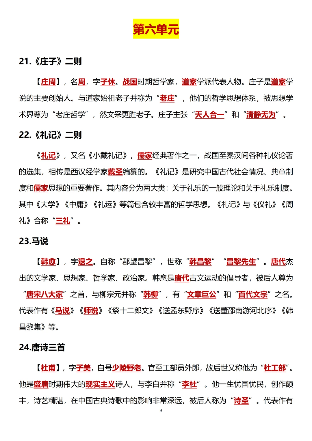 📝每课重点都标红了,重点盯紧:作者 + 朝代 / 国家 + 代表作,这三类是必考项!