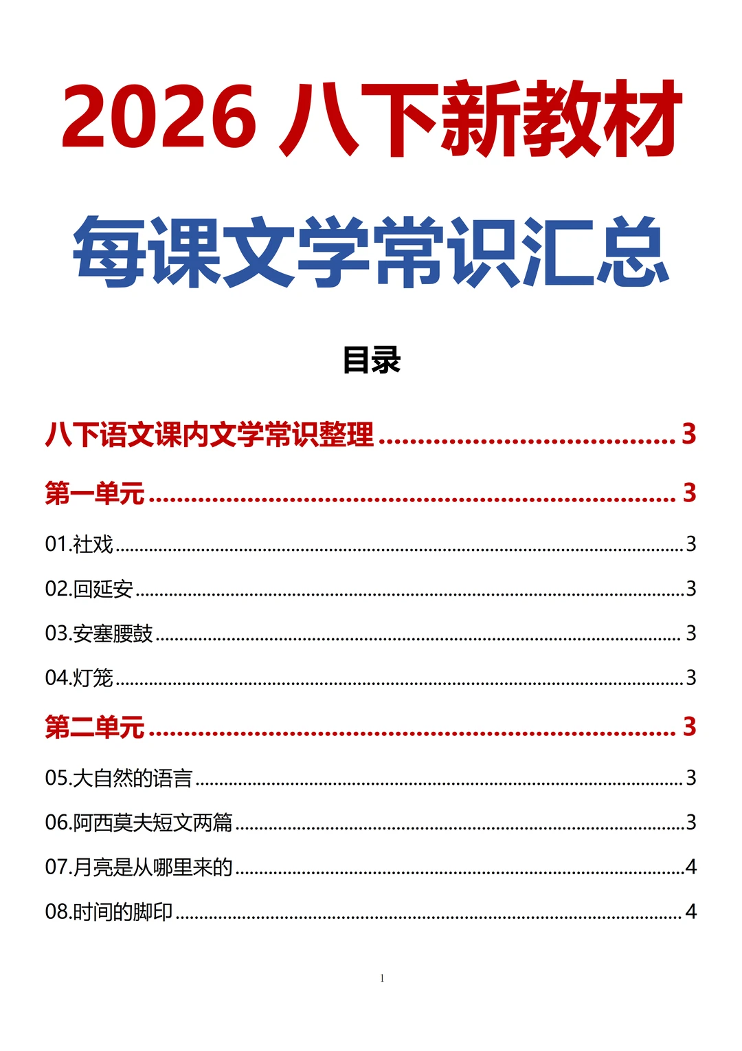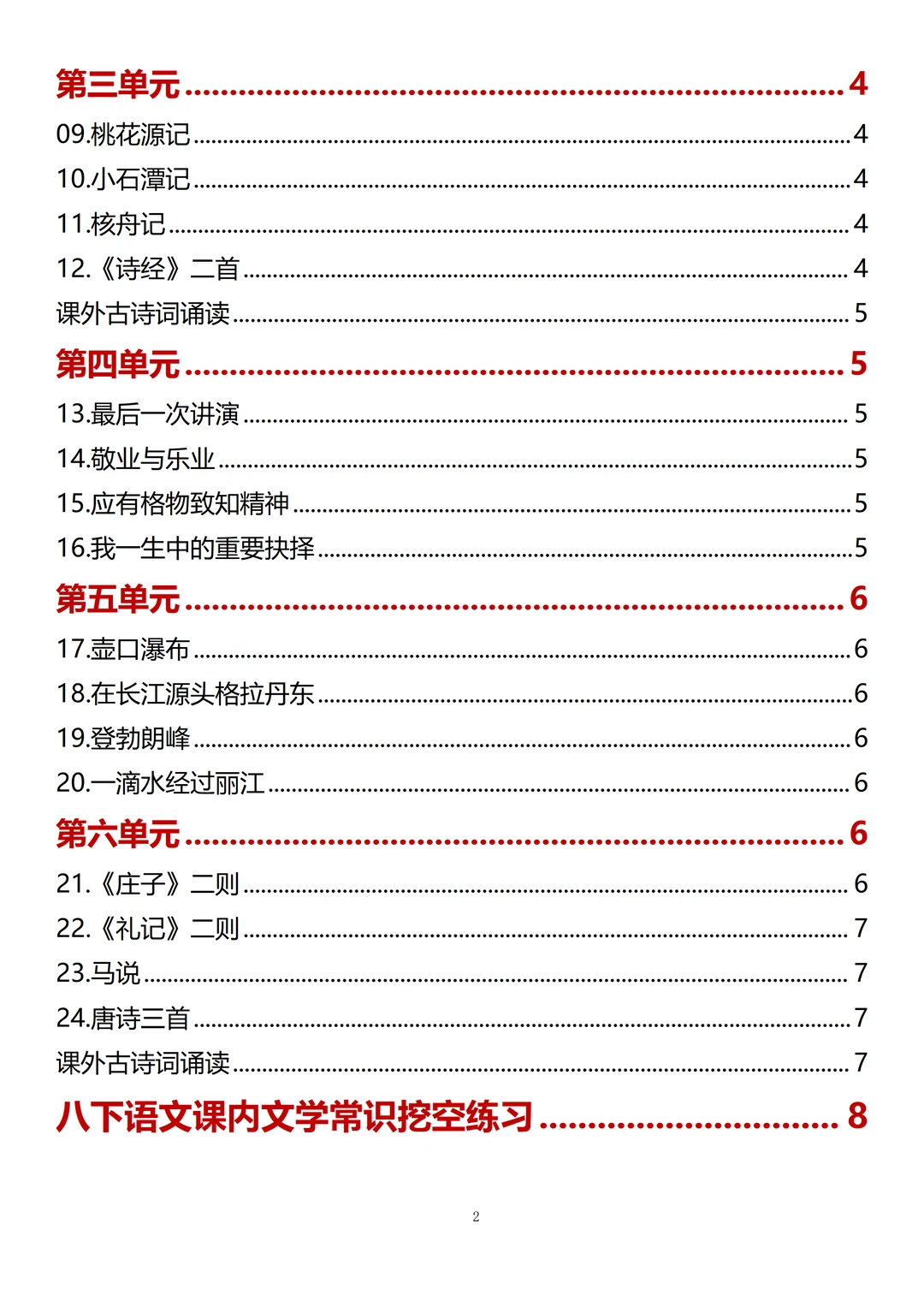 我整理了八下 24 课 + 2个单元的课外古诗文学常识汇总,全是从真题里抠出来的高频考点