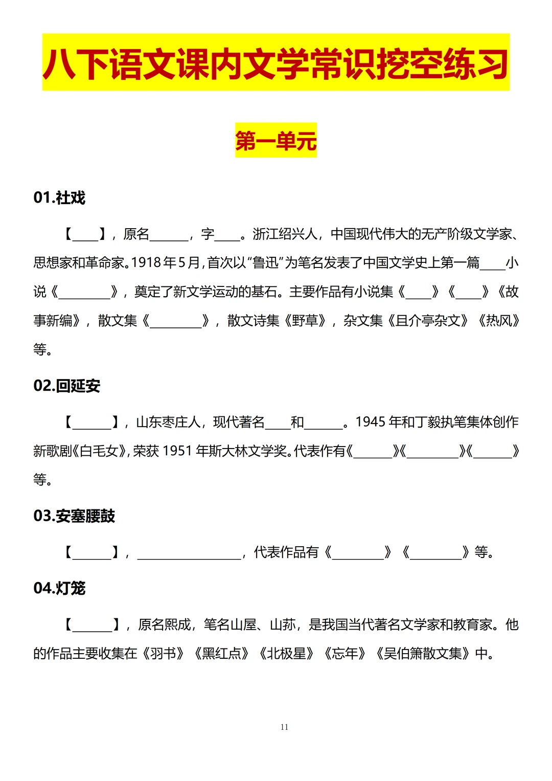 [火R]课内的文学常识是八下一个很重要却常常容易被大家遗忘的考点,吃透这份资料,练好这些真题,文学常识题=送分题!