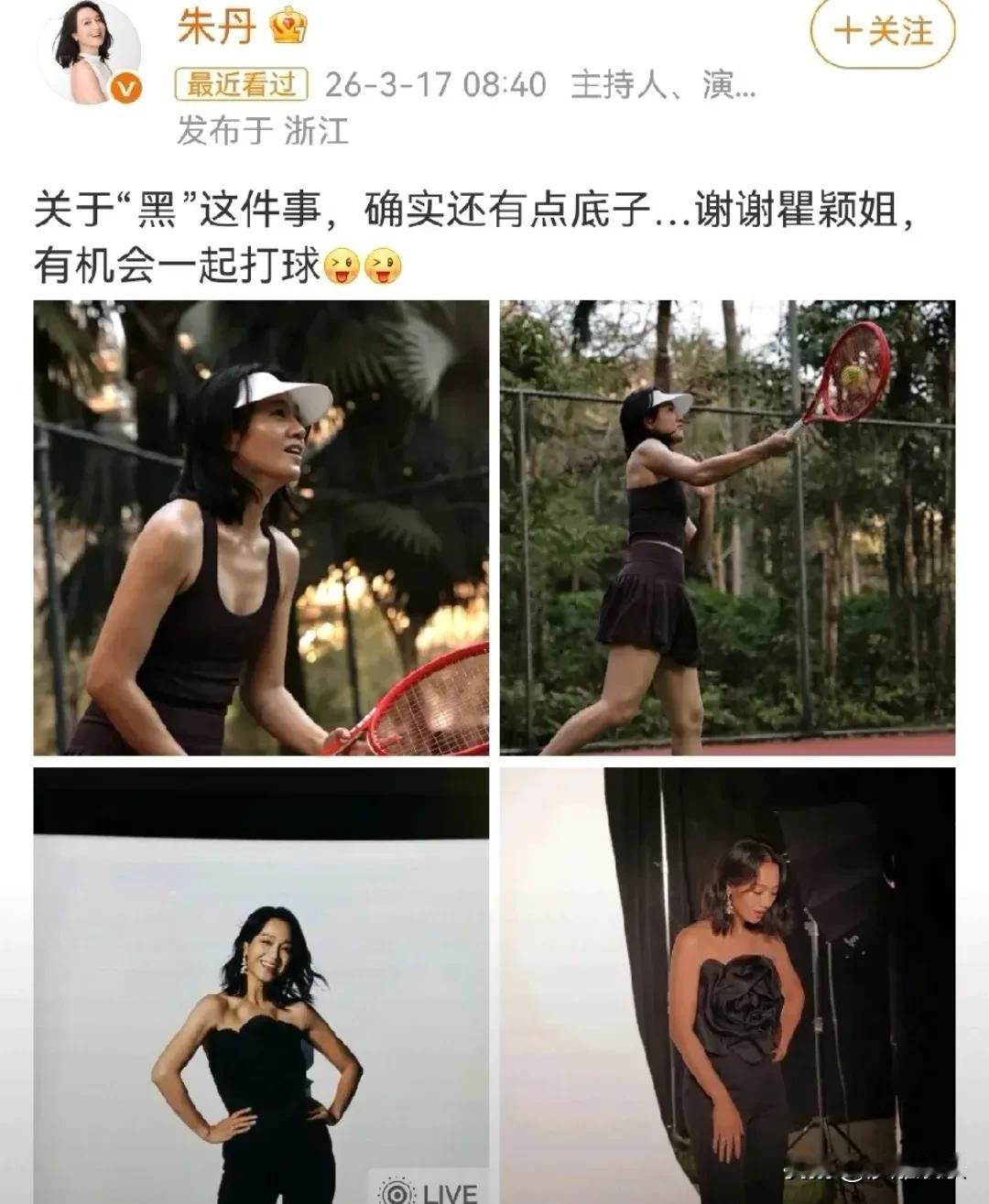 朱丹,正面回应! 3月17日,朱丹一篇回应文,让"黑"也能成为一种让人羡慕的资本,直接把格局打开了 。 事情的起因是瞿颖在综艺《热烈欢迎》里聊到网球搭子,直率吐槽朱丹"特别黑",还补刀说俩人要是一比肯定"很有看点" 。这话要是搁玻璃心身上,估计得冷战三天。但朱丹的反应呢?她不仅没生气,反而在社交平台晒出一组阳光下的户外运动照,配文笑称:"关于‘黑’这件事,确实还有点底子……谢谢瞿颖姐,有机会一起打球" 。 这句话妙在哪?一个"底子"玩了个双关——既承认了肤色深,又暗戳戳秀了一把"健康资本的底气" 。网友看完直呼:"这情商,简直了!" 其实瞿颖说朱丹黑,真没恶意。她原话是先自嘲自己也黑,然后夸朱丹是"有辨识度的黑皮美人" 。但娱乐圈的事大家都懂,话传话容易变味。朱丹这波回应,既没玻璃心反驳,也没卑微讨好,而是用一场"约球"把话题从外貌审判拉回到了阳光运动的轨道 。 有细心网友发现,朱丹晒出的照片里特意拿了一把红色网球拍——这颜色最显黑,她敢直接上手,说明早就和肤色和解了。这种自信,比一百句美白广告都有说服力。 说实话,朱丹这几年经历了太多——从主持翻车到全网群嘲,再到凭性格翻红。这次回应看似是小事,其实折射出她的心态蜕变。 真正的强大,不是让别人闭嘴,而是别人说什么你都能笑着接住。朱丹用一句"有点底子",把所谓的"缺陷"变成了个人勋章 。这种由内而外的松弛感,或许才是中年女星最好的医美。