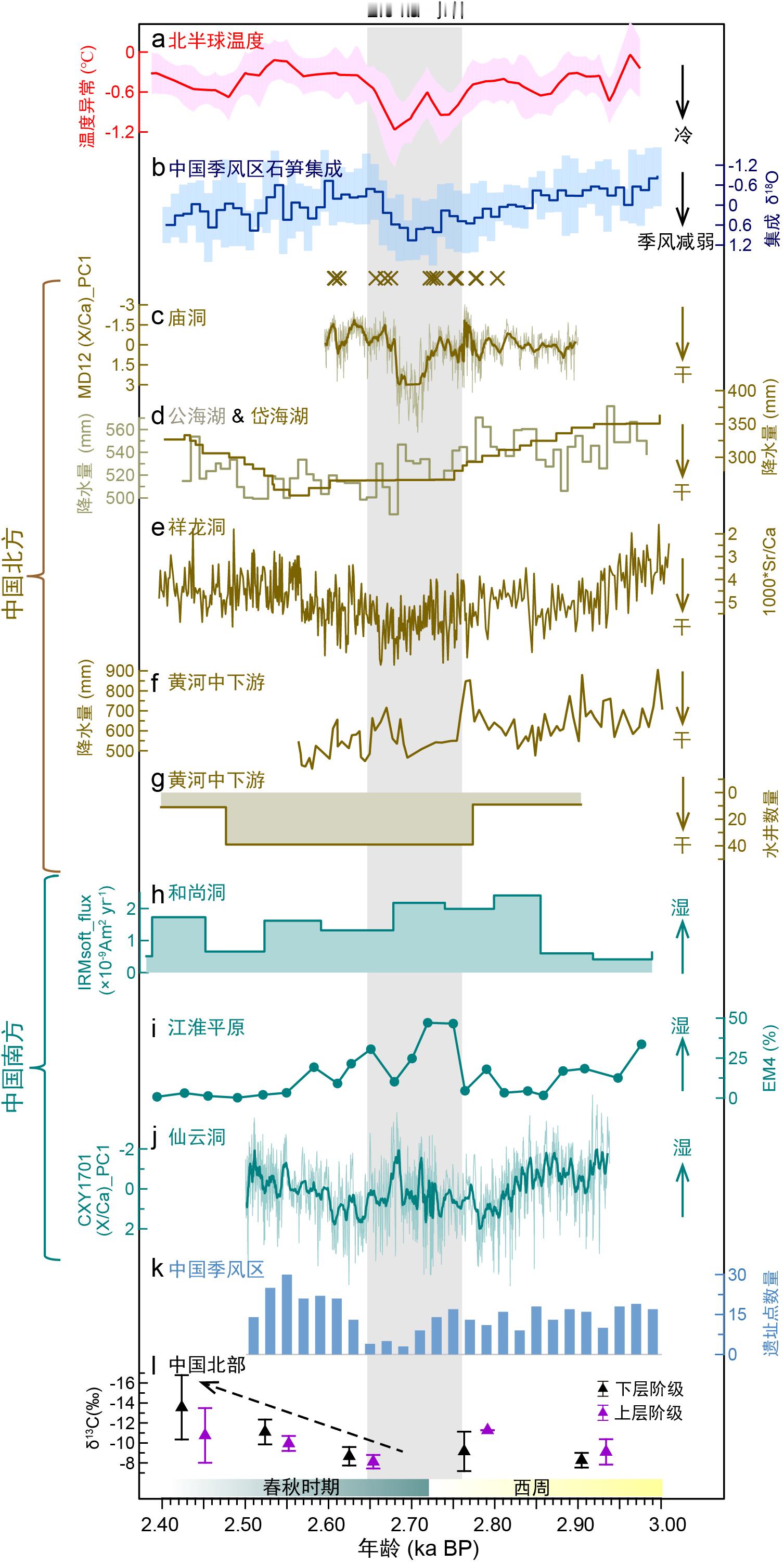 ³ 划重点:西周灭亡前遭遇了一场极端气候突变事件!又干旱又冷。研究人员取名叫“2.8ka事件”。也就是2800年前,北方温度明显降低、东亚季风明显减弱,严重干旱、长时间的寒冷成为主流。重点是持续了近120余年!