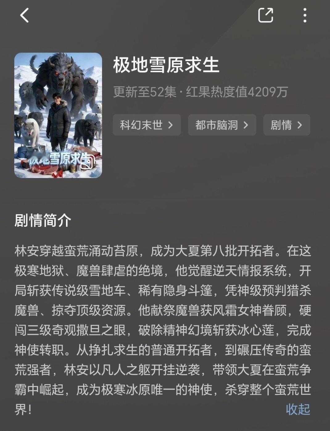 2️⃣极地雪原求生全球求生竞争背景,每集时长良心,很爽