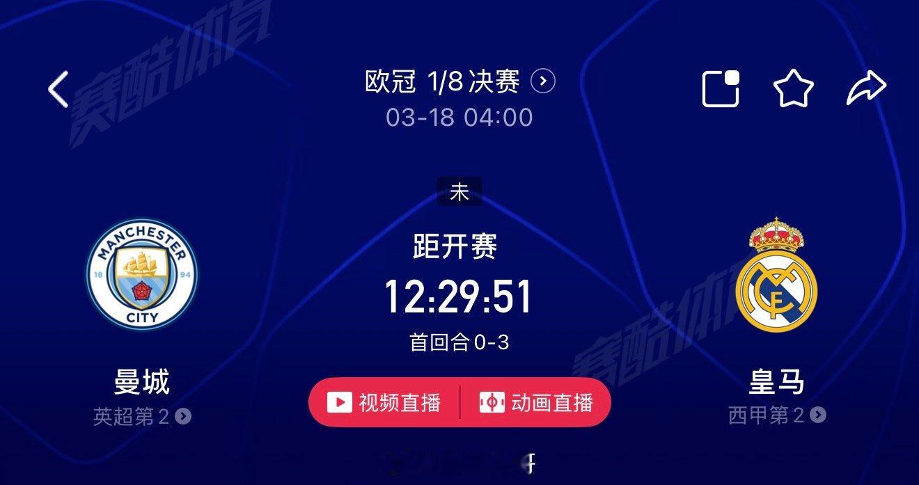 曼城vs皇马 首回合皇马3-0完胜,手握巨大优势。曼城需净胜3球才能拖入加时。皇马虽伤病严重,但可稳守反击。曼城主场强势但防线有损。最可能比分 2-1 或 2-2,皇马晋级八强。