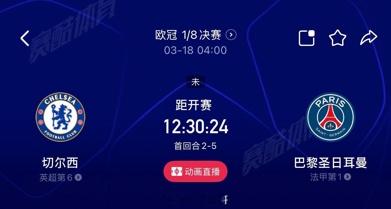 切尔西vs巴黎圣日耳曼 首回合巴黎5-2大胜,手握3球巨大优势。切尔西翻盘需净胜3球以上。巴黎阵容齐整、体能占优,客场稳守反击即可。最可能比分 1-1 或 2-1,车子主场赢球送大巴黎晋级的可能性极高。