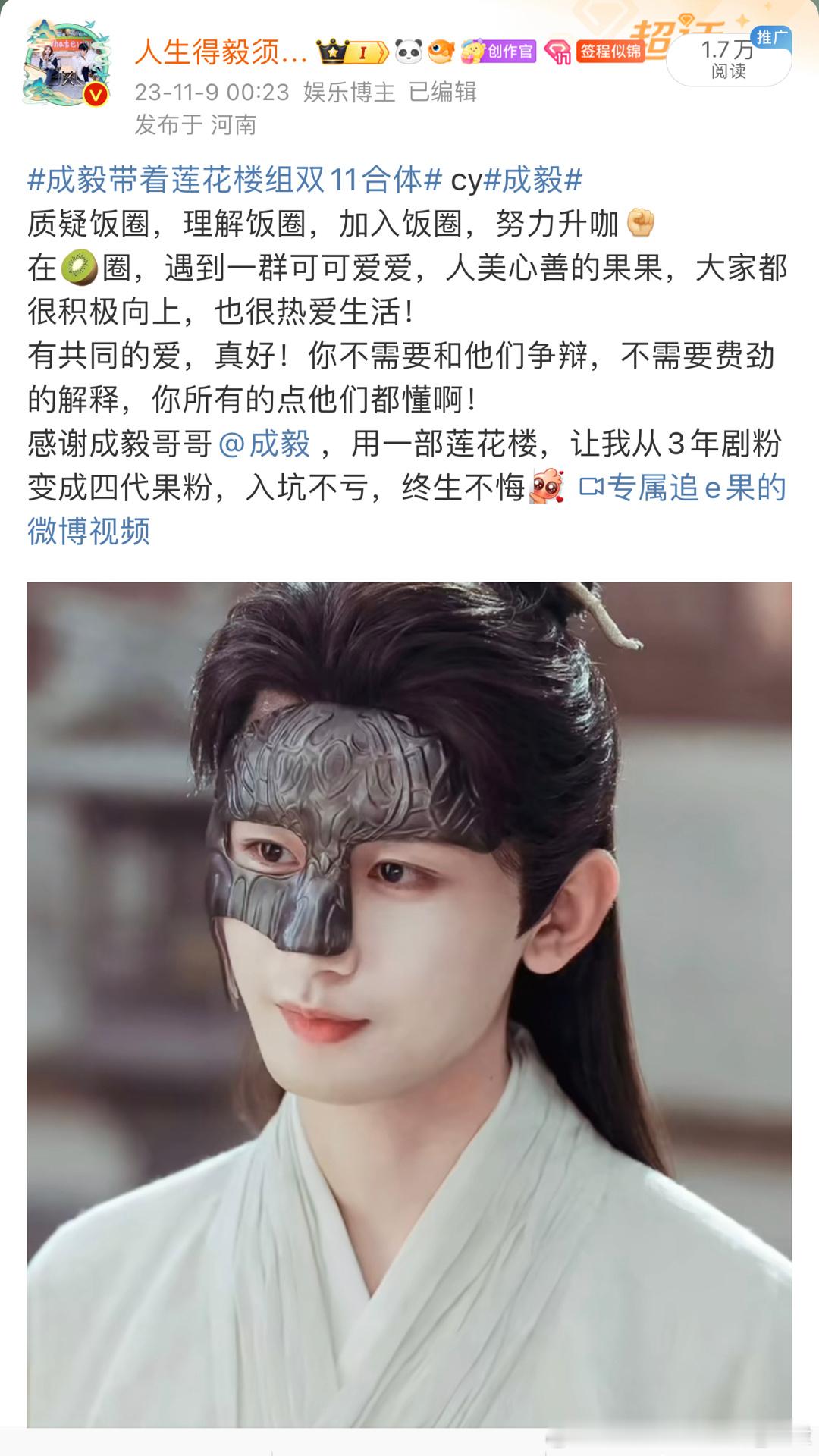 最后,我爱淇圈每一个真心喜欢成毅的果果们!加入这个有爱大家庭,真的幸福感都提升了~未来让我们继续一起快乐吸淇,“表白成毅哥哥,守护最好的成毅哥哥”