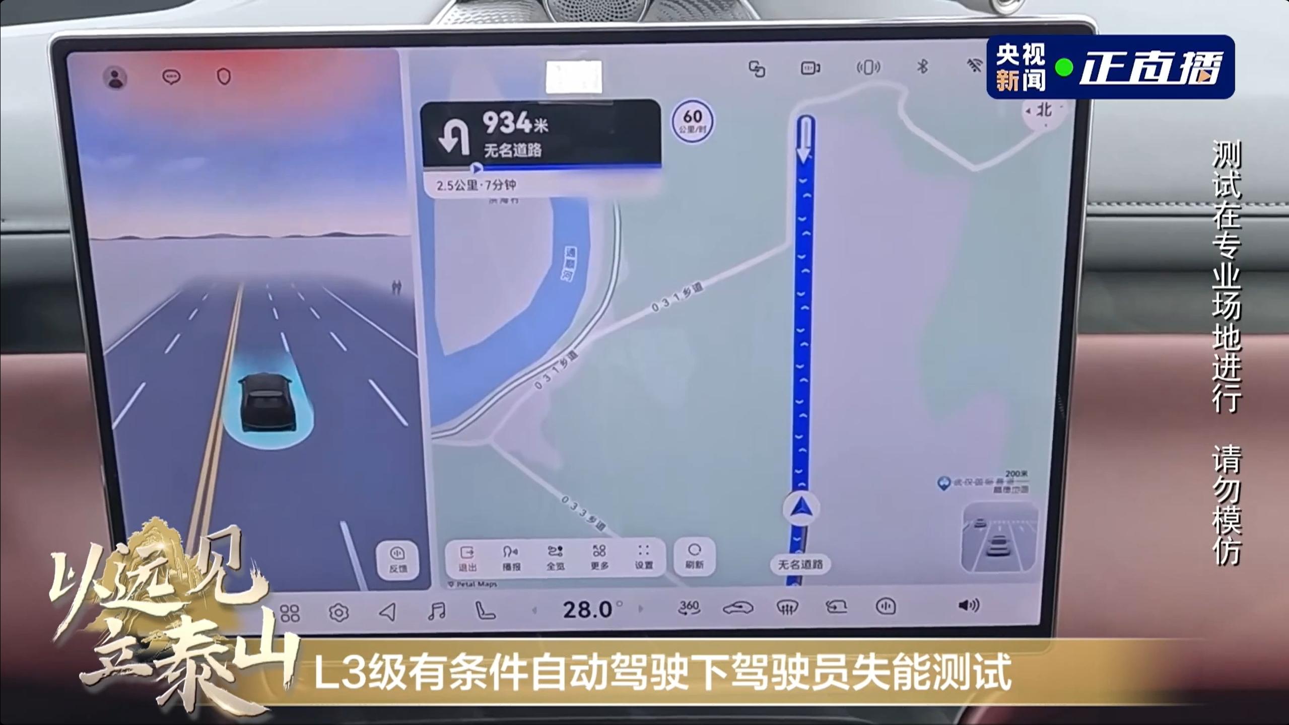 -L3级有条件自动驾驶驾驶员失能测试里,系统先持续提醒接管,保持平稳行驶,随后自动开启双闪靠边停靠,并及时接入救援电话,全程安心可靠。