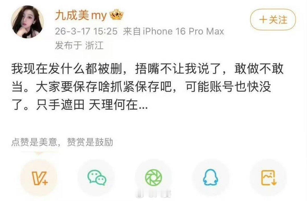 九成美秒删看着九成美发的那些聊天记录和合照,又被秒删,真的有点五味杂陈。不管最后真相是什么,这种把私人感情撕扯到公众面前的样子,真的太消耗人了。希望能给个公道,也别再让更多人被卷进来了。