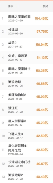 直播吧3月17日讯 3月17日消息,据灯塔专业版,截至3月17日,影片《飞驰人生3》累计票房42.50亿,超过《复仇者联盟4:终局之战》,进入中国影史票房榜TOP10。IT之家注:《飞驰人生》是韩寒编剧导演的赛车喜剧电影系列,首部《飞驰人生》于2019年春节档上映,累计票房17.28亿元;《飞驰人生2》于2024年春节档上映,累计票房33.61亿元。