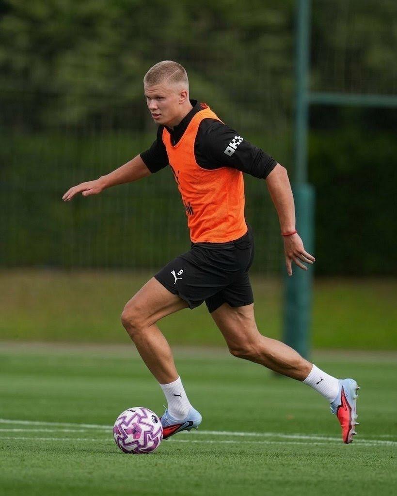 【新造型】在曼城迎战皇马的欧冠1/8决赛次回合前,哈兰德剪去了长发,取而代之的是