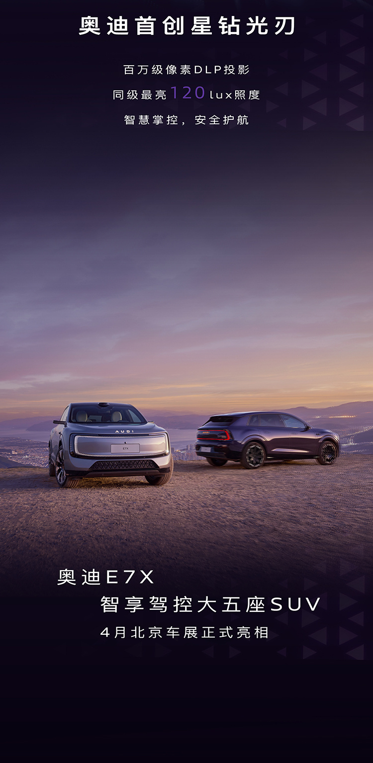 新能源设计卷到今天,拼的不是谁更吸睛,是谁能被记住,可惜大多数车在路上擦肩而过,都分不清是哪家品牌,毕竟都爱一窝蜂堆雷同元素。不过最近发布的奥迪E7X,AUDI第二款力作,不抄袭,不照搬,不困在经典里,绝对属于看一眼就忘不掉的那种。13万微孔星钻光幕真的绝绝子,前后1446颗LED灯,8种迎宾灯语,这仪式感简直是把“排面”两个字刻在了DNA里!还有百万级像素DLP大灯,光毯式照明、跟车距离提示,连自动泊车都能投射标识跟路人“打招呼”,社恐i人表示极度舒适!5米车长+3米轴距,四门无框电动门一开,22英寸大轮毂一转,这气场,妥妥的精英收割机!奥迪E7X原创才是设计
