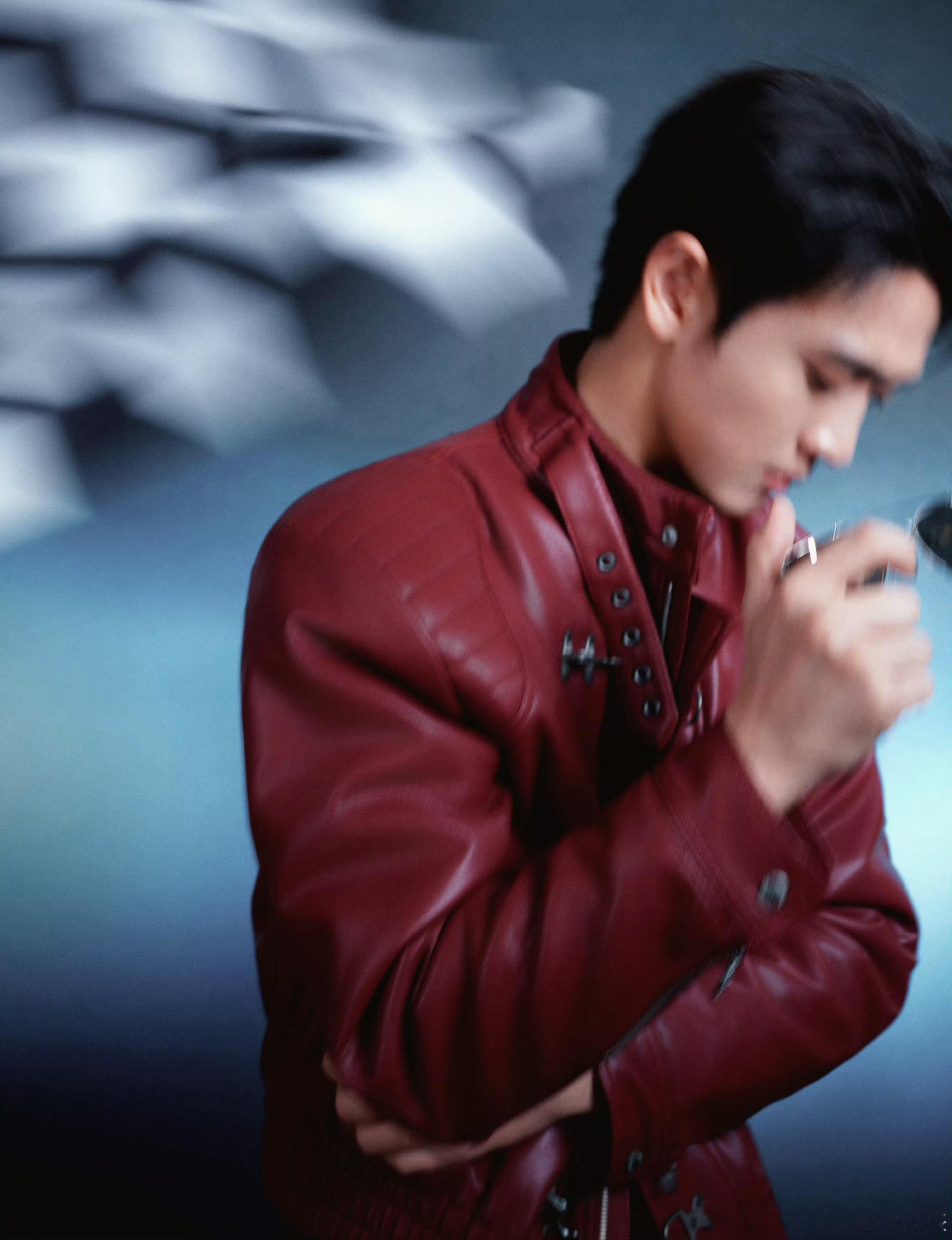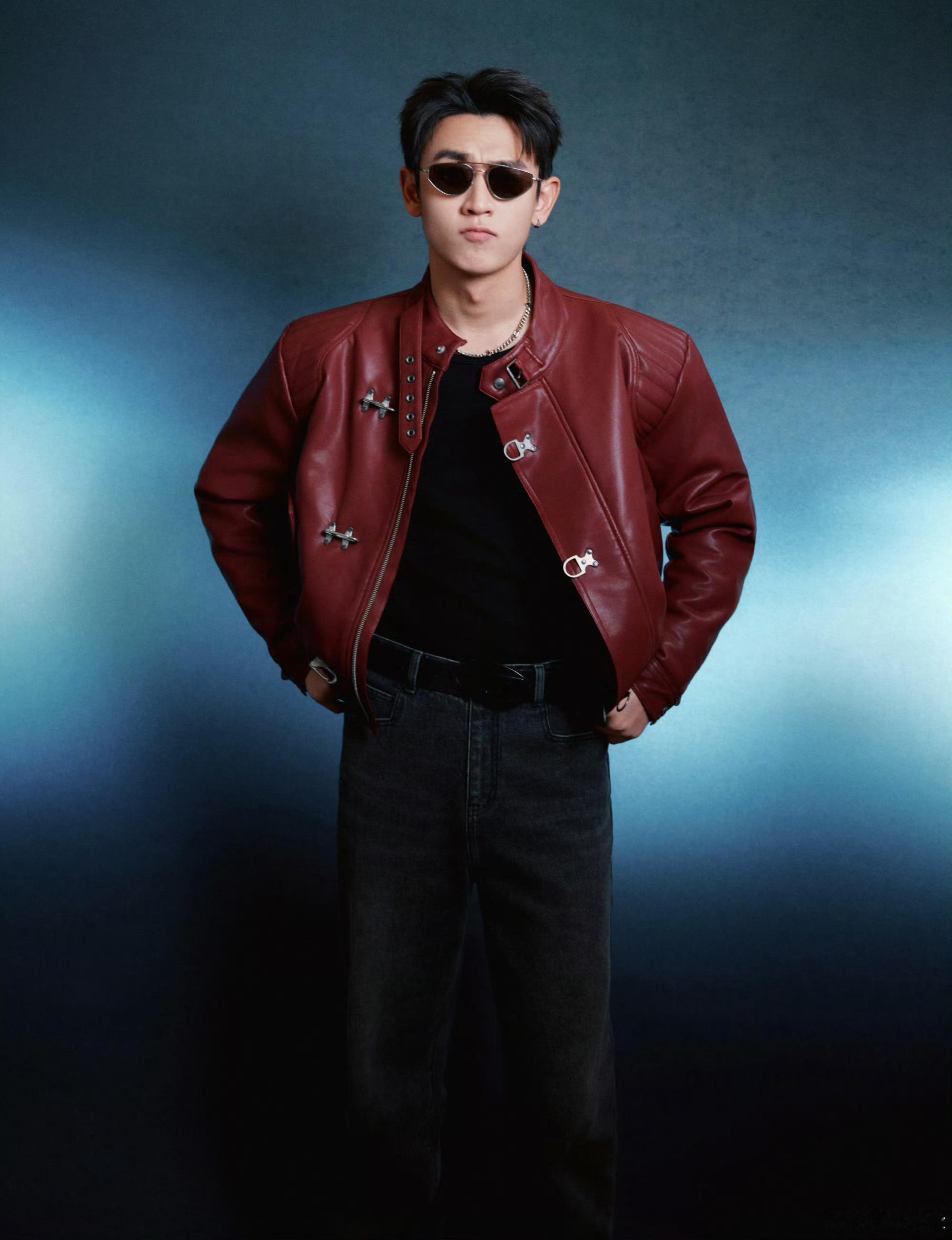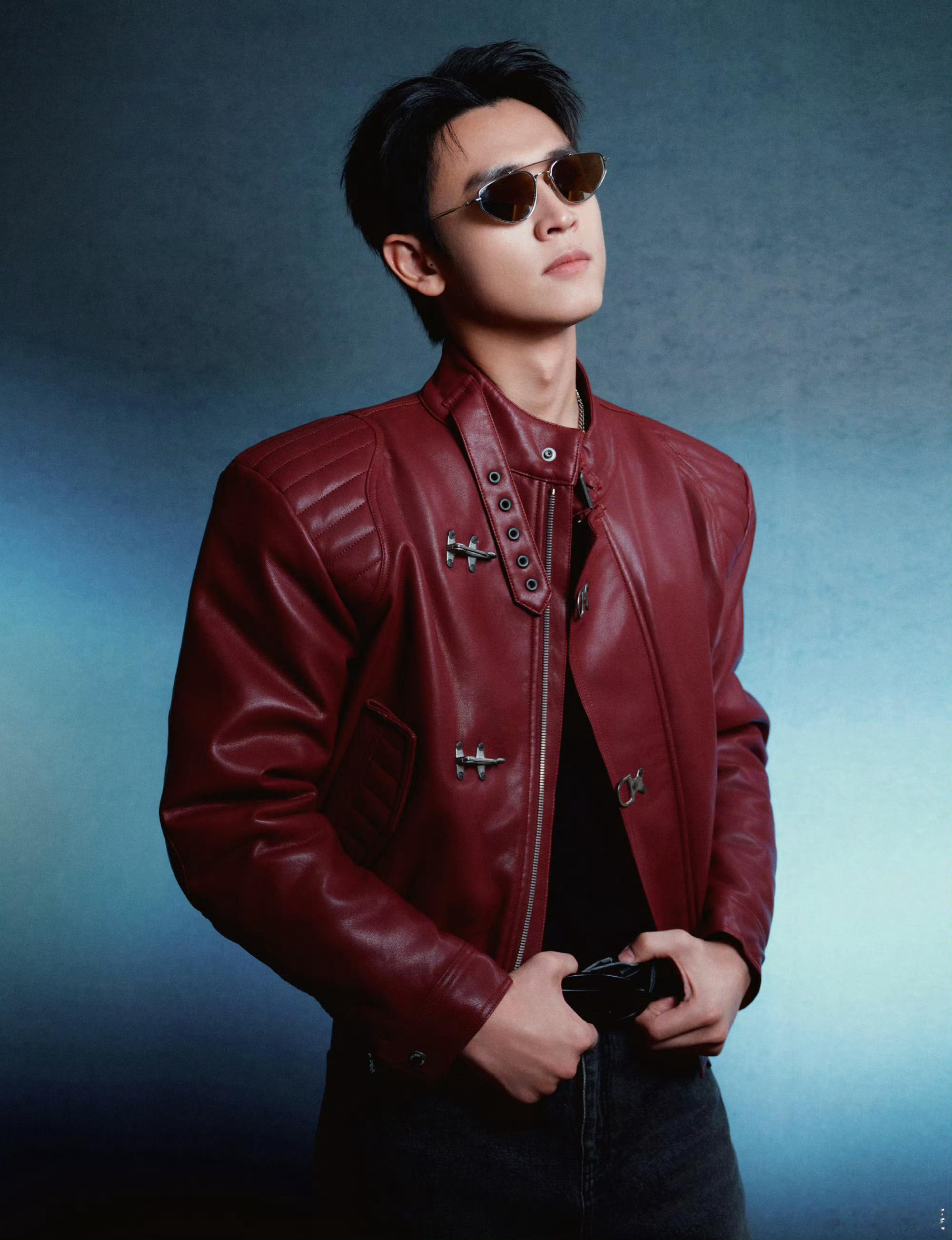 王天辰酒红色皮衣机车服王天辰红皮衣+墨镜焊在身上也太绝了🕶️ 双手插兜的姿态又