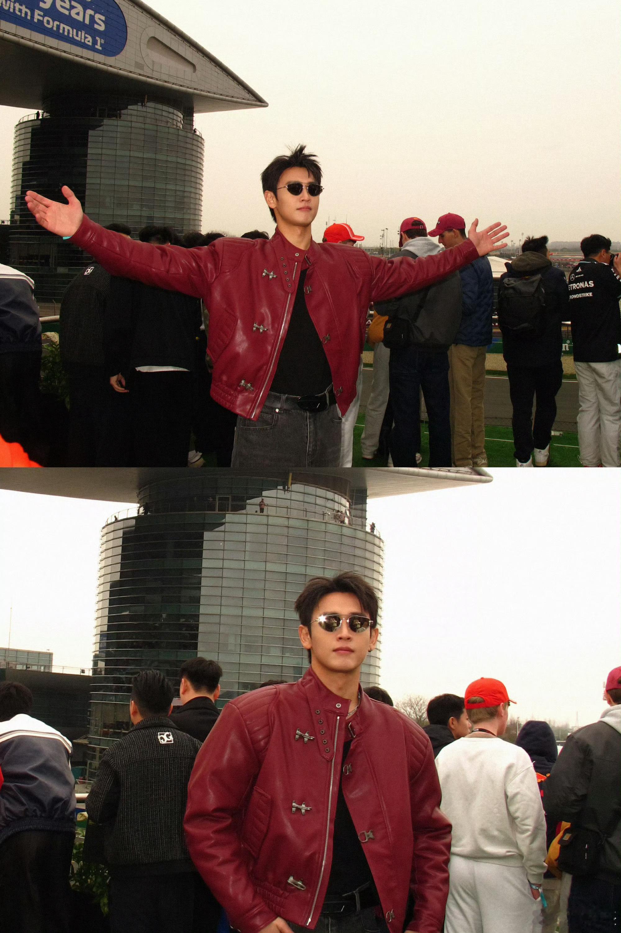 王天辰酒红色皮衣机车服王天辰红皮衣+墨镜焊在身上也太绝了🕶️ 双手插兜的姿态又拽又飒,复古机车风拉满,是行走的荷尔蒙本人!