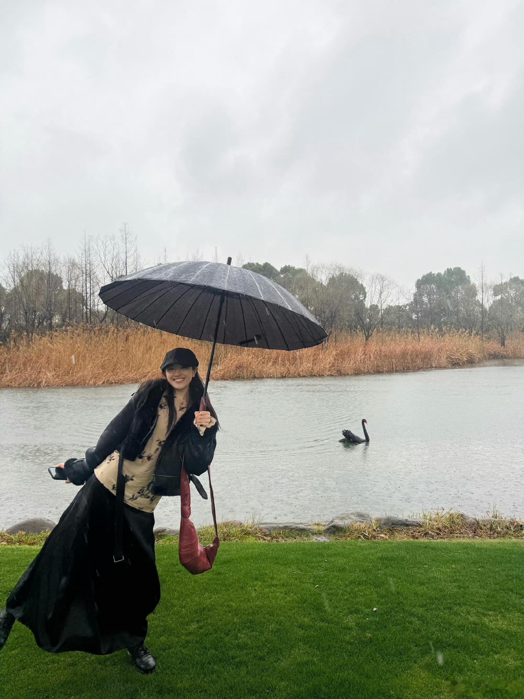 李兰迪日常碎片plog迪哒三两声 掉落日常碎片🧩雨天也挡不住的明媚笑容黑帽配皮衣又酷又萌,灵动又俏皮,妹宝你真的好会拍奥!