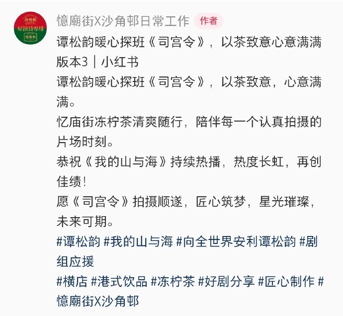 谭松韵探班司宫令被谭松韵暖到!低调探班还贴心送福利~谭松韵请客司宫令剧组