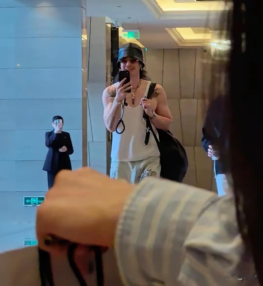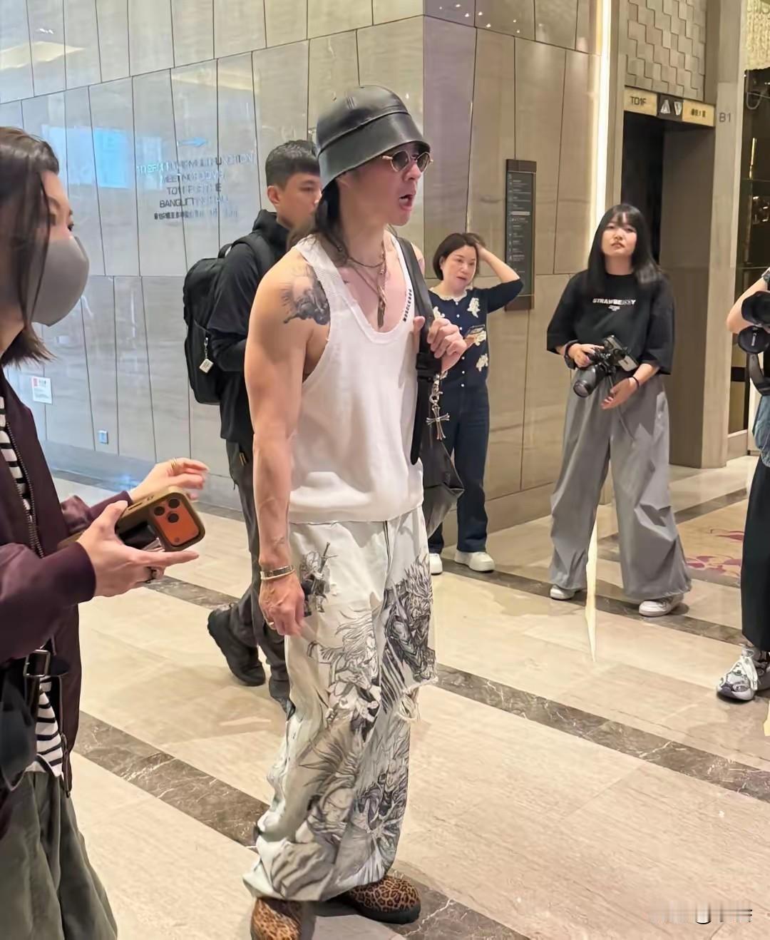 48岁吴建豪在深圳酒店被偶遇,他穿着背心,皮肤看起来好白皙。身材很瘦,但练出了不