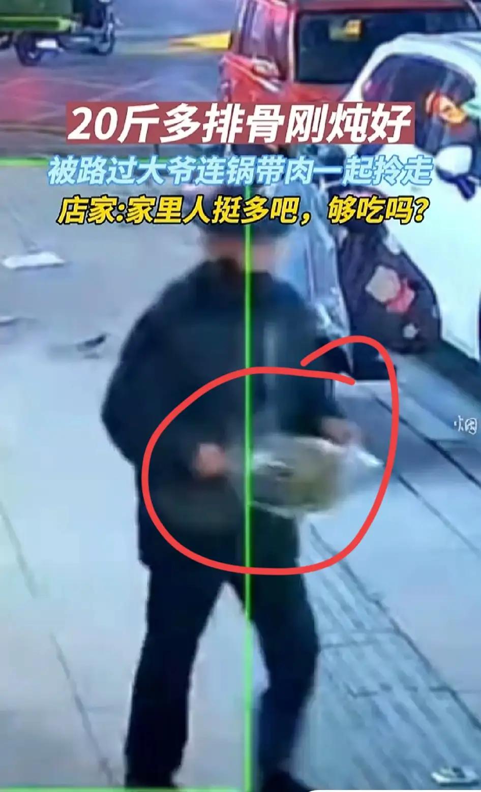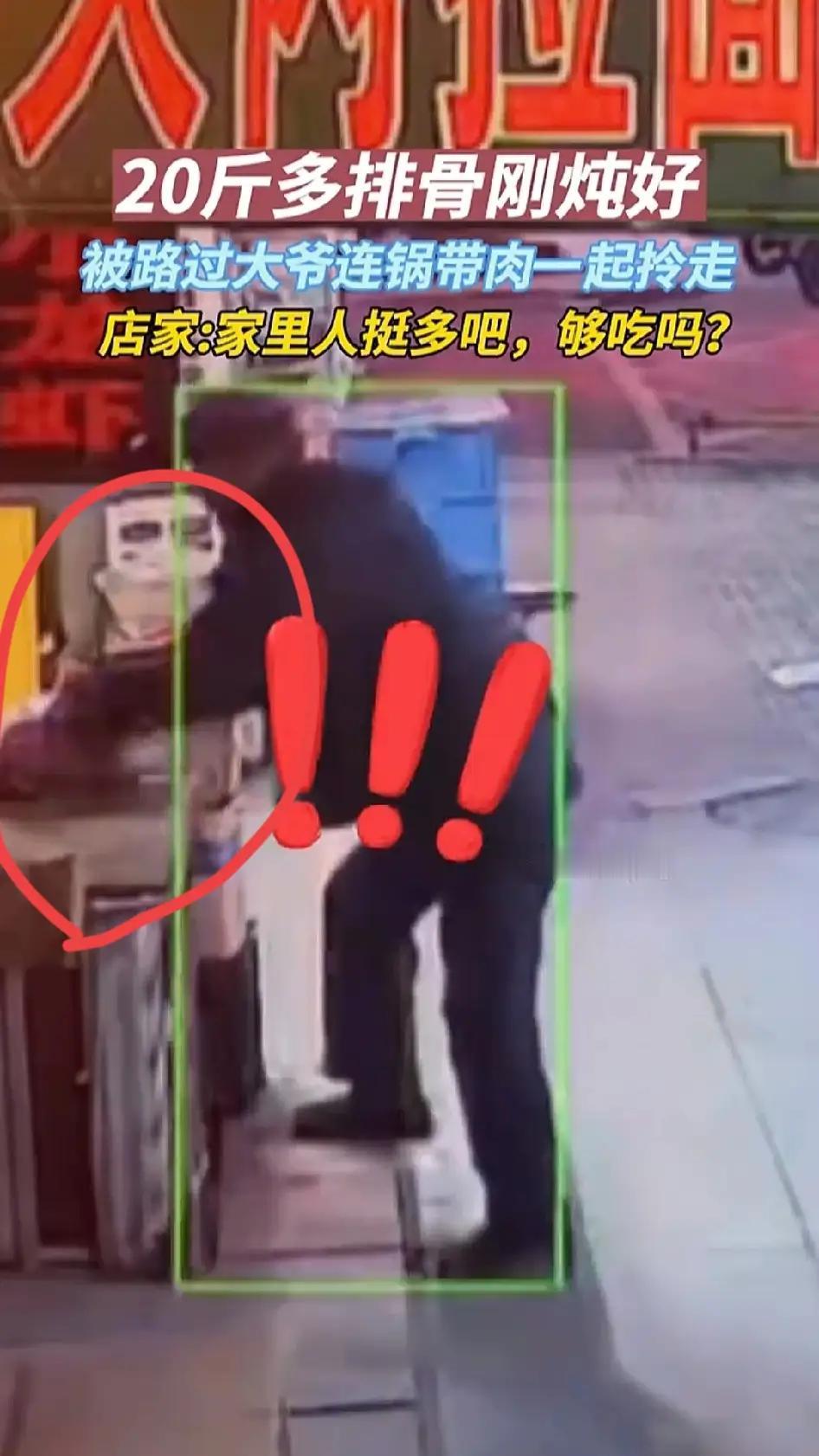 真的是部份坏人变老了,老人变得无耻了 沈阳一火锅伙老板将40斤排骨炖好,用盆子装了20来斤放门口石台上散热,准备放冷藏柜备用,当她忙一阵准备将排骨端进冰柜 1盆20多斤排骨连盆子不翼而飞,慌了神的老极娘赶紧调看监搽,原来,端她排骨的老人大约60多岁,看他几步蹿拢,端起成本价400多元的排骨马上消失了 老板娘赶紧报警。 不论这老头有没有前科,都将付出代价,不说400元够不着判刑,拘留10天半月总行吧。 有些曾经游手好闲的扒手,混混现在确是老了,不敢明目张胆干坏事,就来顺手牵羊偷鸡摸狗。 这个变坏的老人,必将遭到严惩,肯定盆喷喷香的排骨还没吃成,就要抓去蹲几天黑房子,活该。 你对坏人变老了,老人变坏了这句话怎么理解?