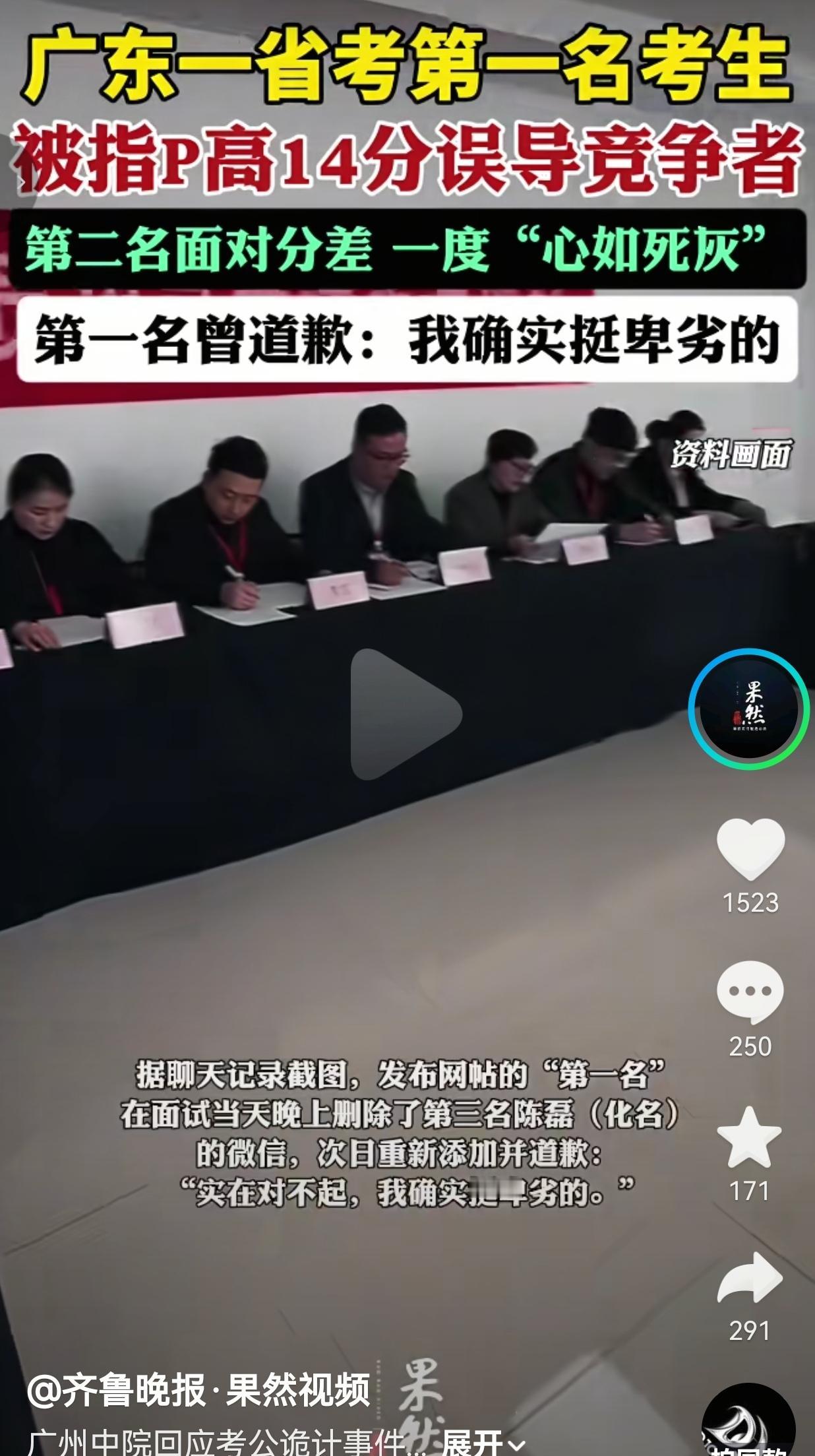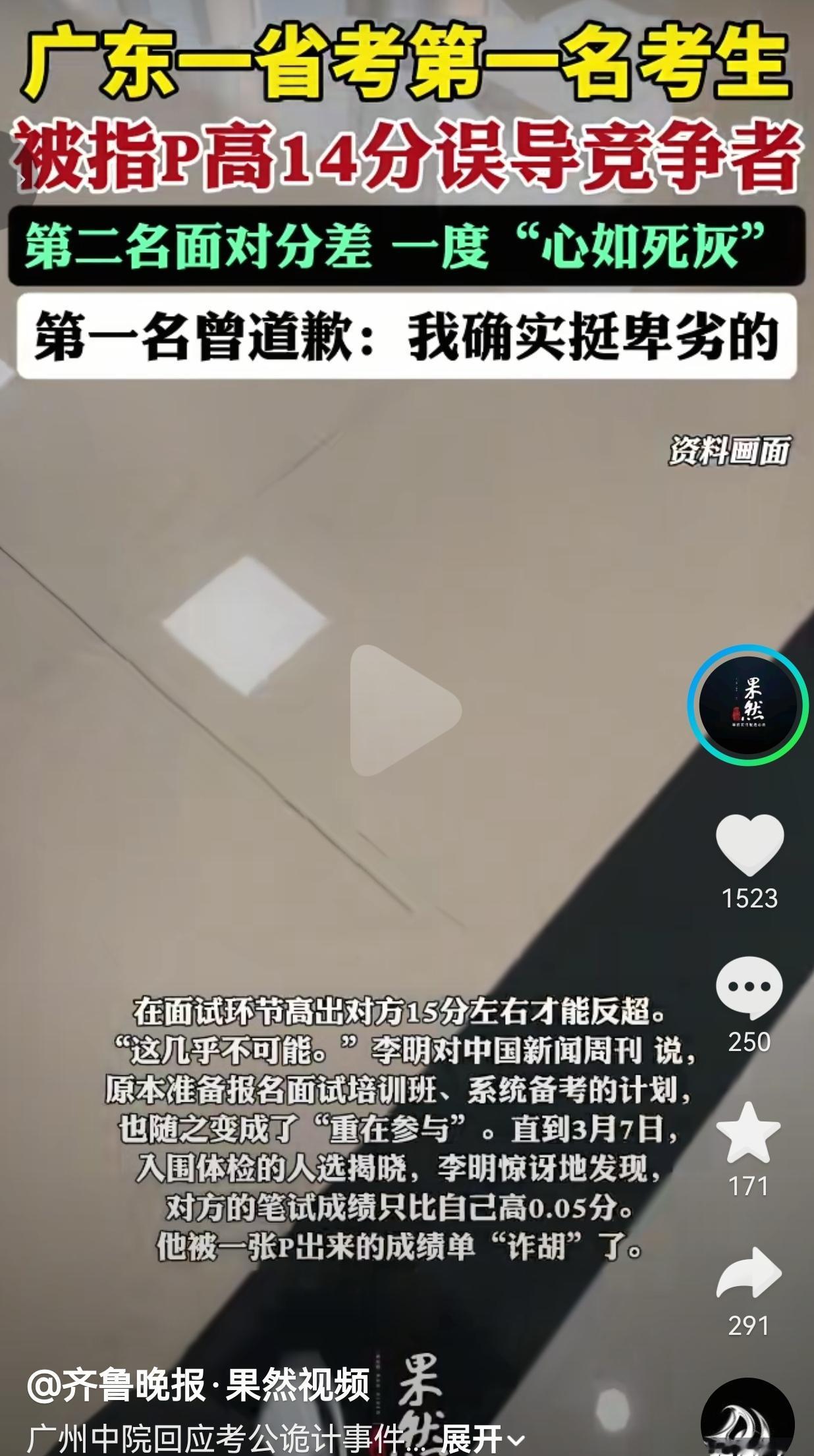 太恶劣了!去年12月,2026届硕士李明(化名)报了广州中院一个法官助理岗,这个岗位只招1个人,千军万马过独木桥,谁都知道这机会有多金贵。 笔试出分那天,他查到自己65.25分,正咬着牙准备面试,突然刷到同岗“第一名”晒的成绩单:行测84.4,总分79.7! 14分的差距!面试要反超15分才能赢,这在考公圈里基本等于被判死刑。 李明当场就瘫了——他本来已经报好了几万块的面试班,连夜退了课,把备考资料全塞进床底,跟自己说“算了吧,重在参与”。 第三名陈磊更惨,被这位“第一名”加了微信,反复被洗脑“我全押在这了,你们别挣扎了”,直接摆烂躺平。 直到3月7日,入围体检名单公示,两个人眼睛都瞪直了:那个晒79.7分的“第一名”,真实笔试成绩只有65.3分,比李明只高0.05分! 合着这俩大活人,被一张P图给“诈胡”了! 更恶心的是,面试结束当晚,这位“第一名”直接删了陈磊微信,第二天又加回来道歉:“实在对不起,我确实挺卑劣的。” 卑劣?这两个字,能抵得过别人熬了无数个夜刷的题、流的泪、差点放弃的人生吗? 网友看到后评论说:“只有考过公的才懂!每一分都是凌晨三点的台灯、掉光的头发、啃过的泡面换的!他一张P图,就把别人的努力踩在脚下,这种人配当法官?配当公务员?” 也有的网友说:“我要是李明,我能气到把手机砸了!本来旗鼓相当的对决,被人用阴招搞心态,这比考试失利还让人绝望!” 也有的网友说:“还道歉?道歉有用要法律干嘛!这已经不是内卷了,是赤裸裸的恶性竞争,必须取消他的录用资格!” 还有的网友说:“太懂这种‘心如死灰’了!以为自己输定了,连挣扎的力气都没了,结果发现是被人耍了,这种落差感,能把人逼疯!” 我真的忍不了!有人说这是“考公心理战”,是“聪明的手段,可是在我看来,这种手段实际上是为了上岸不择手段。 考公的人,谁不是抱着一腔热血想为社会做点事?谁不是在无数个想放弃的夜晚硬撑着? 你为了那0.05分的优势,用一张假图毁掉别人的希望,让他们以为自己输了,让他们放弃努力,让他们在绝望里自我否定—— 你赢了考试,却输了做人的底线。 更让人心寒的是,这种“阴招”居然能钻空子:成绩不公开、信息不对称,让坏人有机可乘,让好人白白受委屈。 我们考的是公务员,不是宫斗剧!比的是能力,不是谁更会耍手段! 广州中院已经介入调查了,我就想问问:这种连诚信都做不到的人,真的配穿上那身制服吗? 这种靠欺骗上位的“胜利者”,真的能代表公平正义吗? 考公这条路,已经够难了——难在题目,难在竞争,难在看不到头的等待。但最难的,从来不是题目,而是人心。别让那些熬夜刷题的老实人,输给只会P图的骗子;别让那些相信公平的年轻人,对这个世界彻底失望。 考公可以输在分数,但绝不能输在人品;公平可以有差距,但绝不能有骗局! 对此,你怎么看? (信息来源:齐鲁晚报果然视频)
