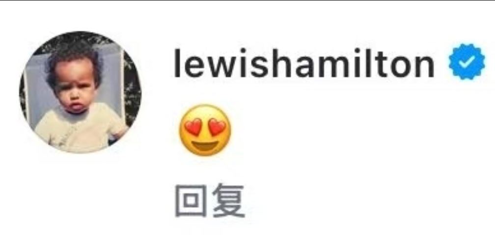 汉密尔顿回复金-卡戴珊的贴文:“😍”