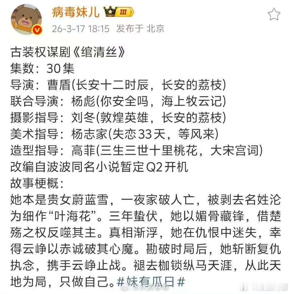绾青丝好像才播过上一版就又要翻拍了。第一版本来要找姚笛,结果她就出事了,所以匆匆找了几个糊糊拍完了一直压到23年才播。