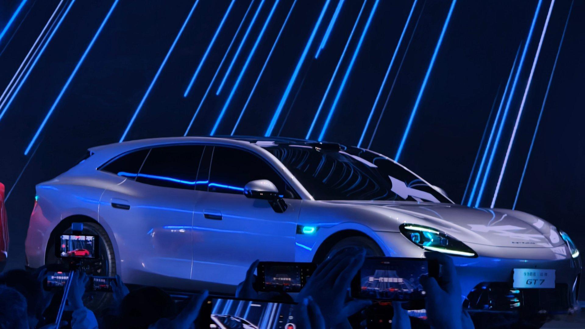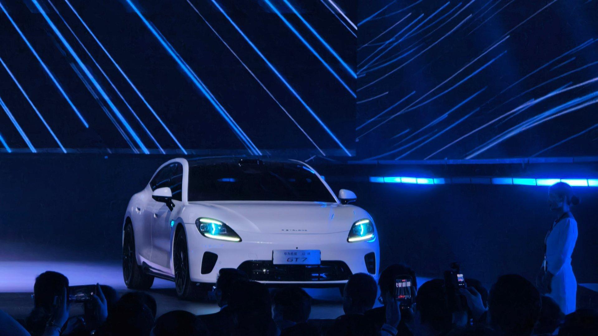 华为启境第一款新车!猎装造型的启境GT7今日揭幕车身好看是挺好看的,比例很合理这