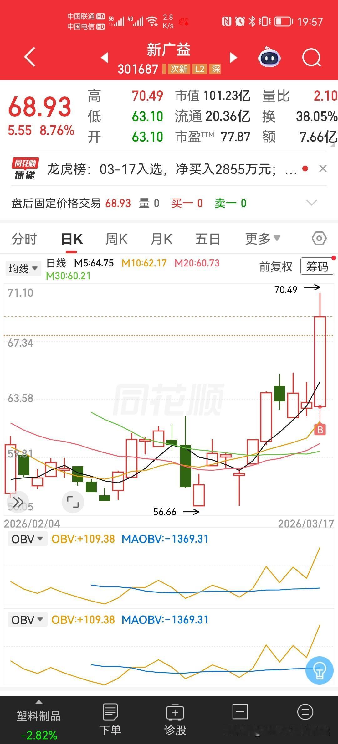 海纳百川纳百川,一诺千金川金诺,新广益,广受益,锡华科技今天的实盘股票有点意思 03月17日消息,截止11:00,近端次新板块活跃,纳百川、锡华科技、双欣材料涨停,天溯计量、新广益、至信股份、振石股份等个股涨幅居前。 今天锡华科技的实盘股票确实有意思!3月17日收盘,上证指数跌了0.85%,但次新股板块却大涨,锡华科技还涨停了,同板块的纳百川、双欣材料等也都表现出色。 龙虎榜数据也很有看头,当日有64只股票上榜。游资动作频繁,量化打板净买4.10亿,量化基金净买2.67亿,