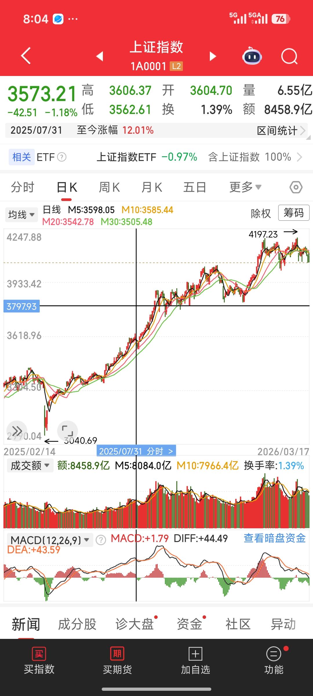 上证指数双头破位,中期调整剑指3800点? 近期A股市场高位震荡后迎来破位下杀,上证指数日线图上清晰显现双头(M头)形态,短期趋势转弱,中期调整压力持续释放。 从技术面看,指数在4197点附近形成双顶结构,随后有效跌破5日、10日均线,当前收盘价4049.91点,已击穿短期趋势支撑位。MACD指标绿柱持续放大,DIFF与DEA死叉向下,释放出明确的做空动能信号,说明市场情绪正从高位乐观转向谨慎恐慌。 从空间测算来看,双头形态颈线位约在4050-4100区间,理论跌幅指向3900点附近;若叠加情绪惯性与历史支撑考量,3800点成为中期调整核心目标位——这一位置既是2025年11月启动平台低点(3815.84点),也是关键心理关口,具备较强承接力。 操作层面,短期需严控仓位,避免盲目抄底;若指数下探3800点区间并出现缩量企稳、MACD底背离等信号,将是中线布局的优质窗口。当前市场仍处于调整周期,防守是第一要务,静待趋势明朗再做决策。 今天我也来做一下大盘分析,一分析,我靠,有点恐怖唉,有可能跌穿4000点,甚至向3800点靠近。时间可能是1~2个月。各位股友们,怎么看待对目前的上证指数大盘? 股票日线 a股红指数 股票市场分析图 指数筑底 指数沪盘 上证五零指数 沪指数 指数反抽 大盘分析行情 股市收盘解析 大盘股下跌 大盘收盘 A股五连涨 大盘a股 指数企稳