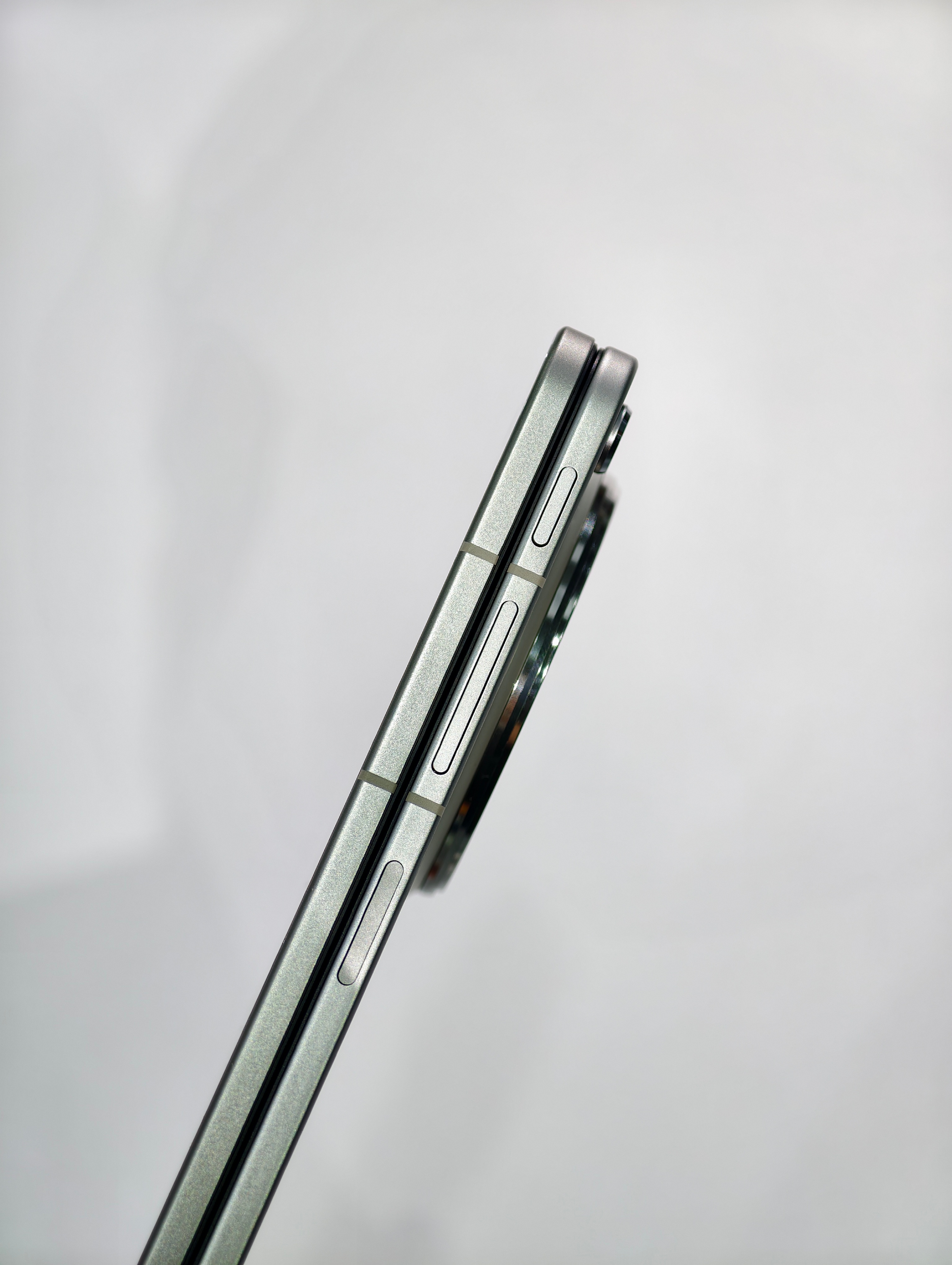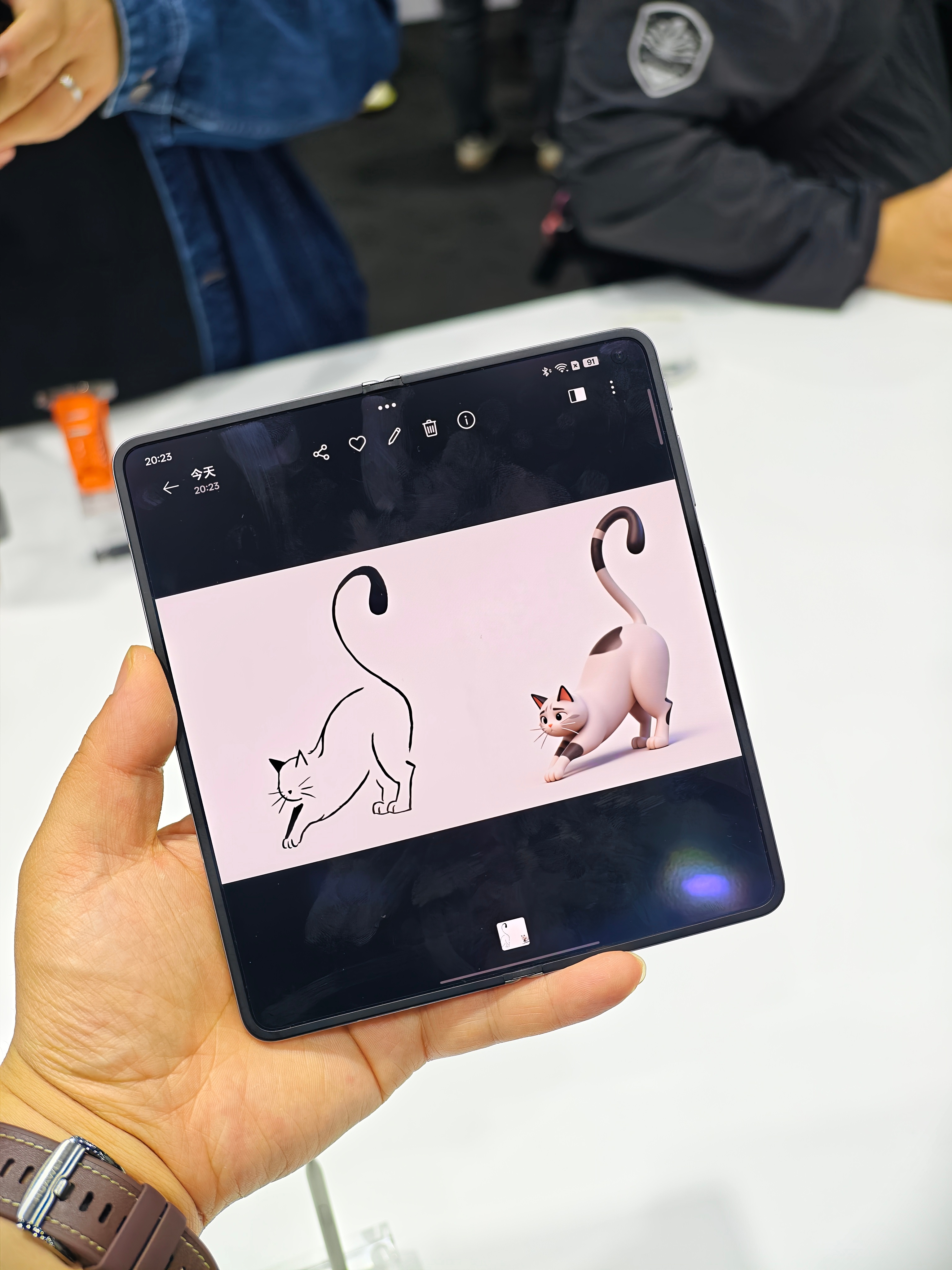 内屏折痕控制出色,正视几乎看不见,指尖滑动也是顺滑平整,日常刷视频、看图文几乎感受不到折痕存在。这机器可以说在轻薄、折痕、手感、影像等多方面都做到了均衡,尤其AI方面的新功能,日常使用便携很多,个人感觉很适合当主力机