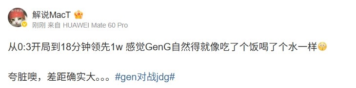 解说MacT看GEN 1-0 JDG:感觉GenG自然得就像吃个饭喝个水一样