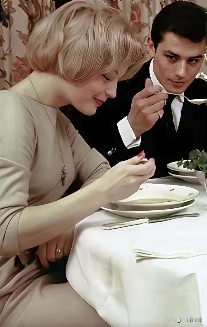 阿兰德龙年轻的时候,确实是个帅小伙,照片中的他,正在深情的看着身边的这个女孩,这个女孩长的也是相当的漂亮,两个人应该是在一起吃饭,阿兰德龙在看女孩的时候,女孩也许已经意识到了,但是故意假装不知道,所以这张照片看起来特别的传神,展现了两个人当年的风采!