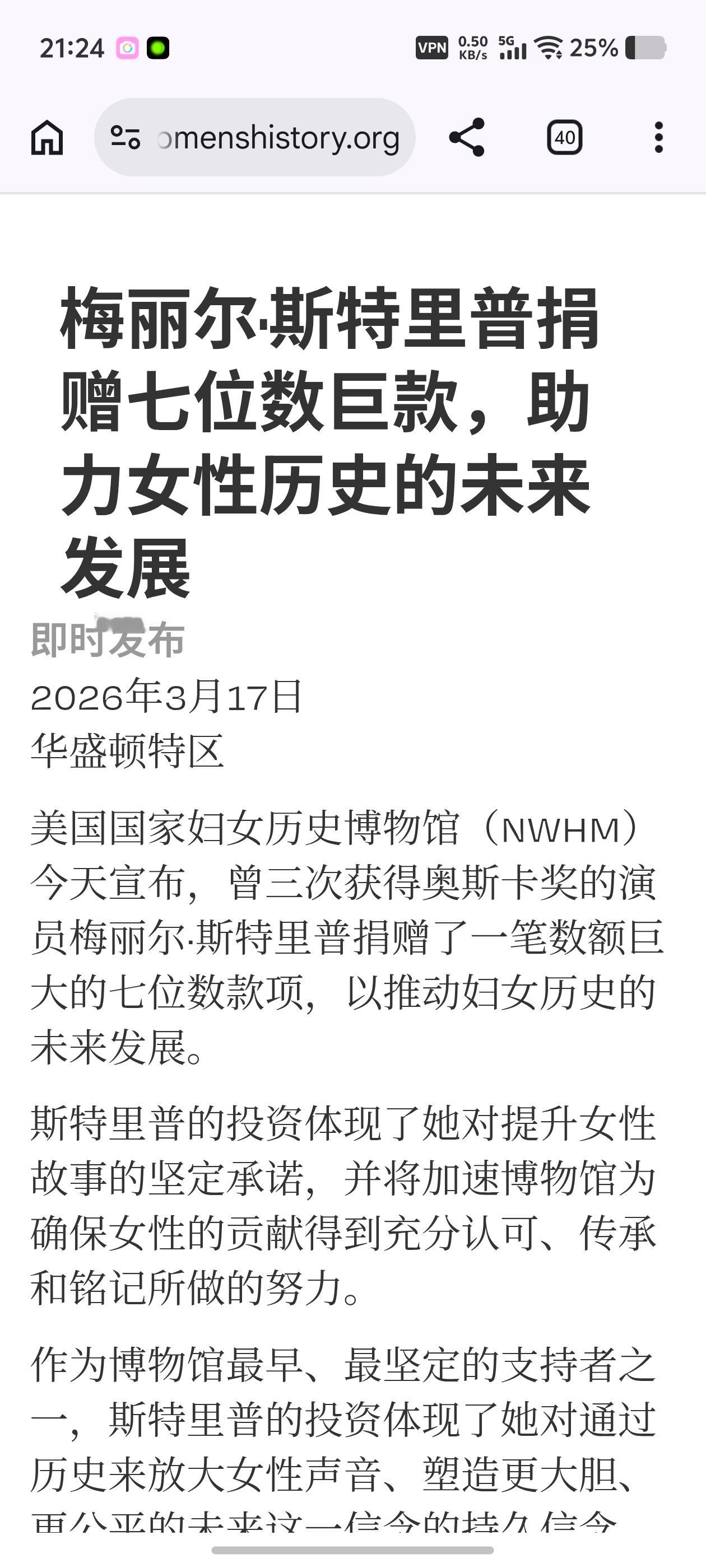 我梅又捐钱给女性项目了,这个女性历史博物馆她支持十几年了,创办的时候就力撑。不仅出钱还出力,好几届活动她都有主持。女性要讲述自己的故事,女性的贡献不能被埋灭。想到红薯那位隔三差五就要阴阳梅丽尔的贝蒂粉丝就好笑,之前夸科恩嫂做女性电影的制片,结果半篇幅用来踩我梅,说我梅这类人只会演讲或是参与女性电影。每个人都有擅长的东西,我梅就是做不来制片(我是指真正干活的制片人而不是挂名的)但她对平权问题,男女平等问题,从她少女觉醒时开始,一生都在实践女性主义。从本职工作演员方面,挑选角色(除了刚出道演了两部)从不演男性角色主导的片子,尽可能拓宽女性角色的类别范围,饰演了各色不同性格不同阶层不同身份的女性角色,影响了非常多的女演员。
