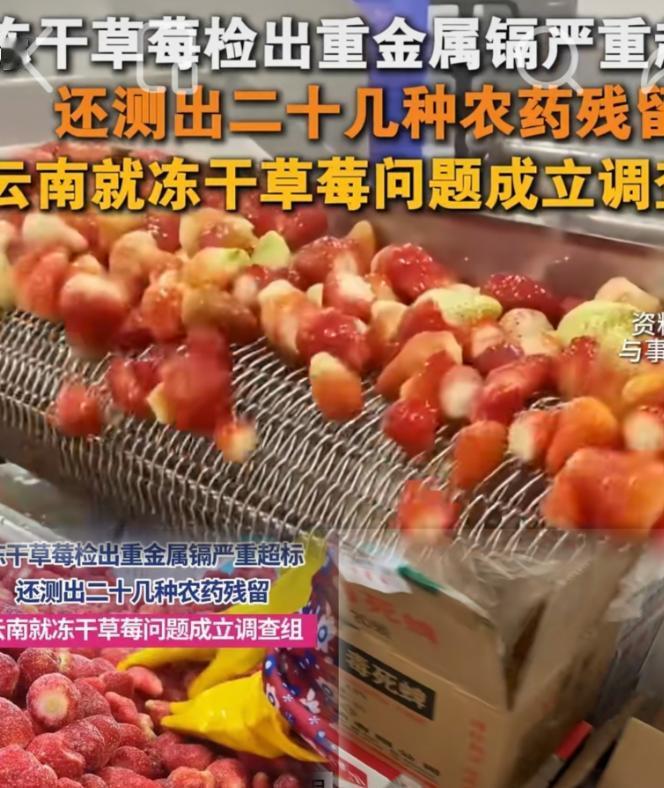 21吨冻干草莓农药超标? 这下咱们可算是开了眼了! 不是偶然失误,不是单一批次问题,而是一条从田间到餐桌的黑色利益链,把无数家庭的“健康零嘴”,变成了藏毒的“隐形杀手”。 3月14号凌晨,云南官方紧急通报,连夜集结公安、市场监管部门成立调查组,直奔楚雄、曲靖、丽江等草莓产区。 查封种植园、扣押设备、追查流向,这场彻查,只为揭开一个后背发凉的真相——市面上不少冻干草莓,早已被农药和重金属“浸透”。 这一切的导火索,是福建漳州一位食品加工从业者的主动送检。 没人想到,这次普通检测,竟撕开了整个冻干草莓行业的遮羞布。 这位从业者从云南采购21吨冻干草莓,打算用于儿童零食和烘焙配料,本着负责的态度将货物送检。 检测报告让她懵了——镉含量0.728mg/kg,远超水果制品0.05mg/kg的国标,超标足有14.56倍。 更可怕的是,这批草莓不仅检出20多种超范围农药残留,还有9批次测出2019年就明令禁止用于草莓种植的剧毒农药克百威。 镉是世卫组织认定的一类致癌物,难代谢,长期摄入侵蚀肾脏、破坏骨骼,对孩子危害极大。 克百威毒性堪比砒霜,短期误食头晕恶心,长期摄入可能导致肝肾衰竭。 她拿着报告举报,得到的回应却让人心寒。 工作人员称,现行国标没有专门针对冻干草莓的限量标准,无法立案。 合着新鲜草莓带毒算犯法,脱水烘干后,就成了不法商家的“免罪金牌”? 更讽刺的是,3月9日国家市场监管总局已明确,冻干水果属水果制品,需按现有国标监管,堵住了漏洞。 3月16日,国家食品安全风险评估中心回应,冻干是物理脱水,不会产生新镉污染,企业需用合规原料。 可这些回应来得太晚,不法商家早已钻足了空子。 更让人毛骨悚然的是,检测结果曝光后,回收商竟主动找上门。 江苏一家食品公司拍胸脯保证,过期、超标冻干草莓全收。 原来,这些带毒草莓会被打成粉末,悄悄掺进冰淇淋、蛋糕、奶茶中,无人能察觉。 记者赶赴云南产区,眼前景象触目惊心。 楚雄永仁县、曲靖会泽县的种植园里,种植户为提品相、减损耗,超量喷洒毒死蜱、敌敌畏等禁药。 当地农资店负责人坦言,害虫已产生抗药性,这些农药基本失效,却仍被疯狂使用。 下游加工厂心知肚明,却因利益照单全收。 他们直言,合格检测报告花钱就能买,还开辟“样板田”,种无农药草莓蒙混送检。 从田间喷药、加工厂造假,到回收商二次利用,黑色利益链吞噬着百姓健康。 截至目前,那21吨带毒冻干草莓仍躺在福建仓库,后续处理、是否有更多超标产品流入市场,仍未可知。 此事曝光后引发全网热议,不少家长直言后背发凉。 我们精心挑选给孩子的“健康零嘴”,竟可能藏着致命隐患。 此次乱象,既暴露了从业者的贪婪无底线,也凸显了监管滞后与漏洞。 国标空白不该是不法商家的“挡箭牌”,监管补位也不能总靠“事后补救”。 希望官方彻查不留死角,严惩责任人,尽快完善标准、堵住漏洞。 毕竟,食品安全无小事,关乎孩子健康的每一口零食,都容不得半点马虎。 信源:冻干草莓“测出20多种农药残留”?云南成立调查组-中国新闻网
