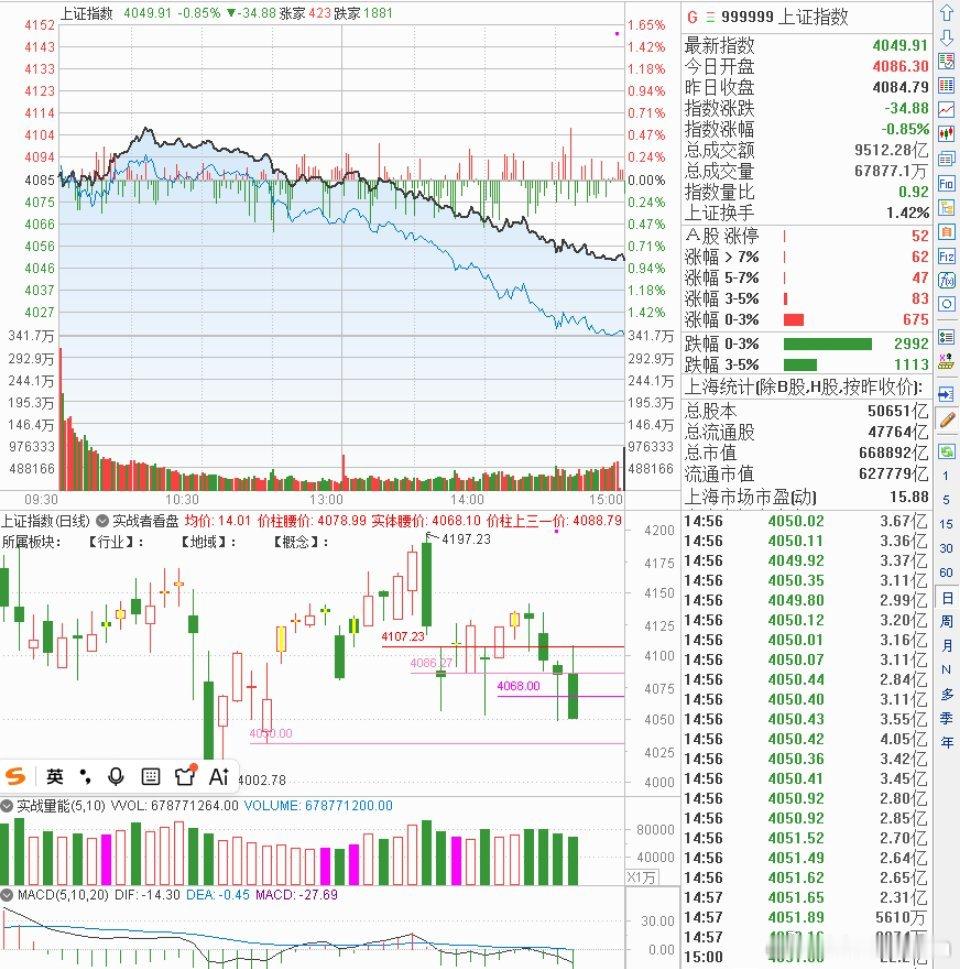 在周日的文章中提到:周一指数若指数出现阳盖阴(放量站上4106点),则试探性进场信号(很明显周一没有达标,应该控仓观望或去弱留强),很明显周二也没有达标,应该也要继续控仓观望或去弱留强!