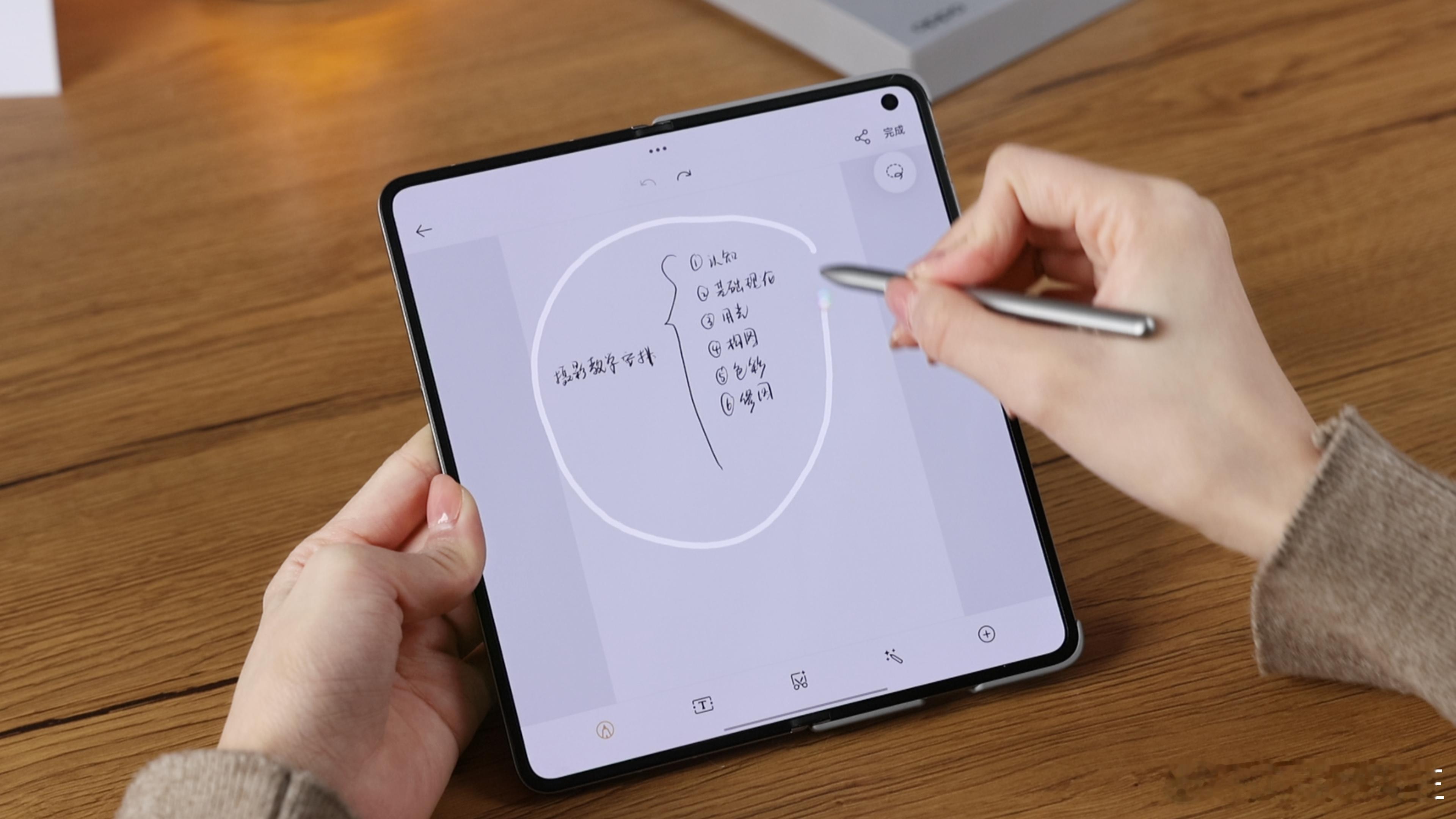 这个我真得夸一下!OPPO Find N6 的 AI 手写笔真的改变了我用折叠屏的方式!按住 AI 键圈一下手写草稿,瞬间生成可编辑的思维导图和柱状图,会议记录直接省一半时间!2ms 延迟 + 4096 级压感,写起来跟真笔没区别,磁吸充电随用随充超方便。折叠屏终于不再只是追剧神器,有这支笔加持,直接变身移动工作站!