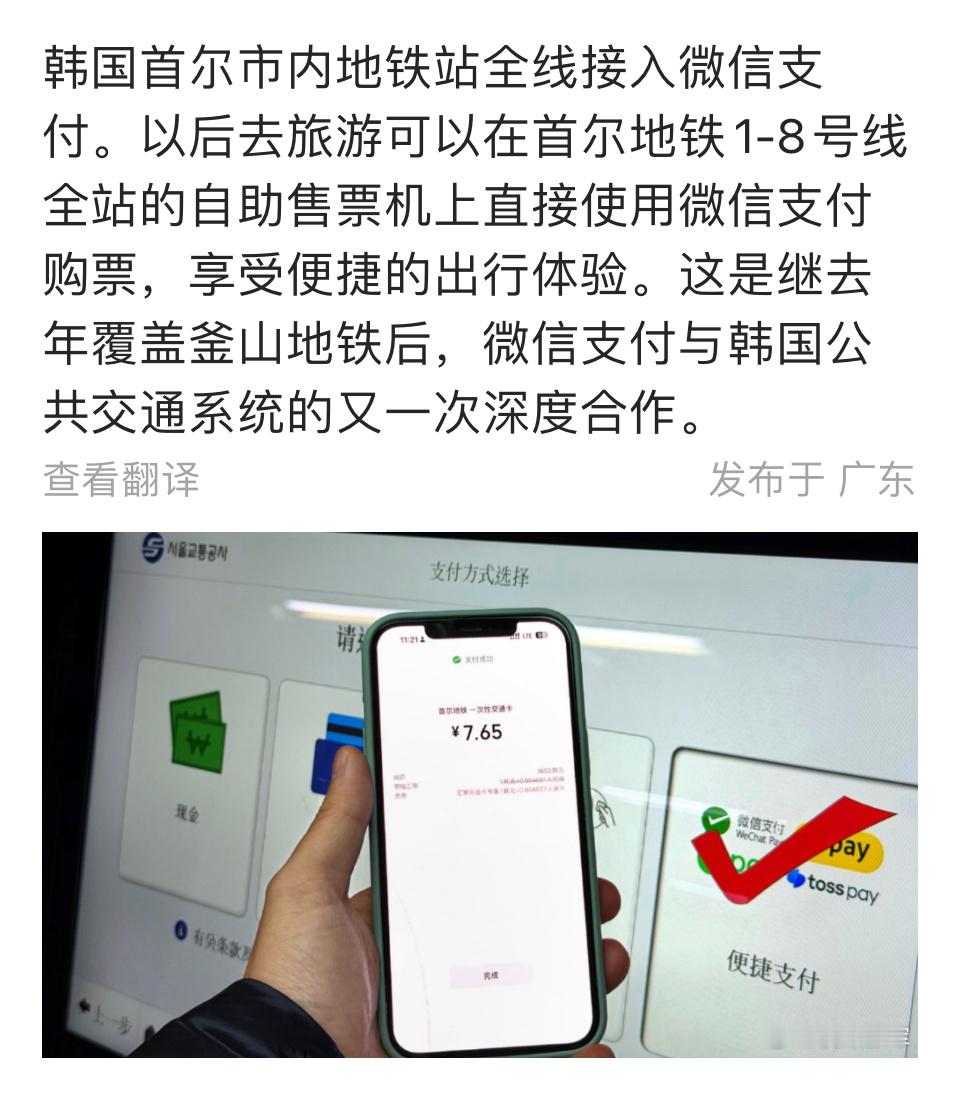 首尔地铁全线接入微信支付,去韩国感觉越来越方便了…首尔市内地铁站全线接入微信支付
