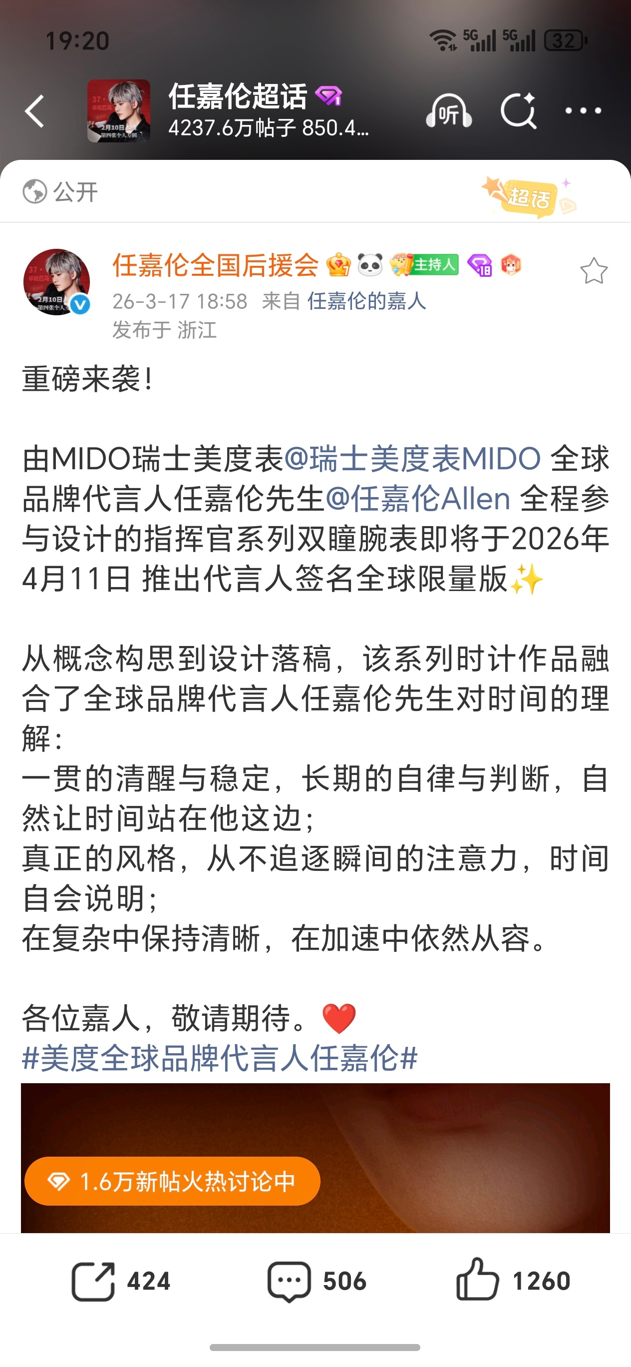 表也参与设计!!!!!瑞士美度全球品牌代言人任嘉伦亲自操刀的 MIDO 指挥官系列双瞳腕表全球限量,4月11日惊艳亮相,期待一下任设计师的灵感佳作