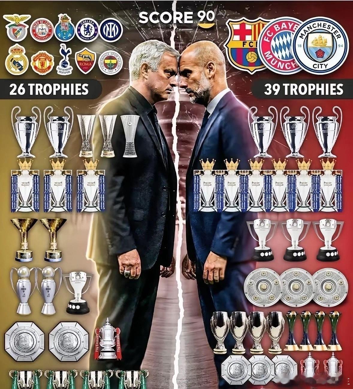 穆里尼奥能把铁炼成钢,瓜迪奥拉能把钢磨成刀。让他俩换活干,准得搞砸。穆里尼奥专治弱队,他能让士气低落的球队重振旗鼓,用钢铁意志和防反战术,把二流队伍送上欧洲之巅,波尔图和国米就是例子。瓜迪奥拉则像精密工程师,他接手的是顶级球队,目标是榨出每一丝潜力。他用精准传控,把天才球员捏合成无敌之师,巴萨六冠王、曼城欧冠就是证明。一个定义了弱者如何逆袭,一个展示了强者如何登峰造极。足球穆里尼奥瓜迪奥拉
