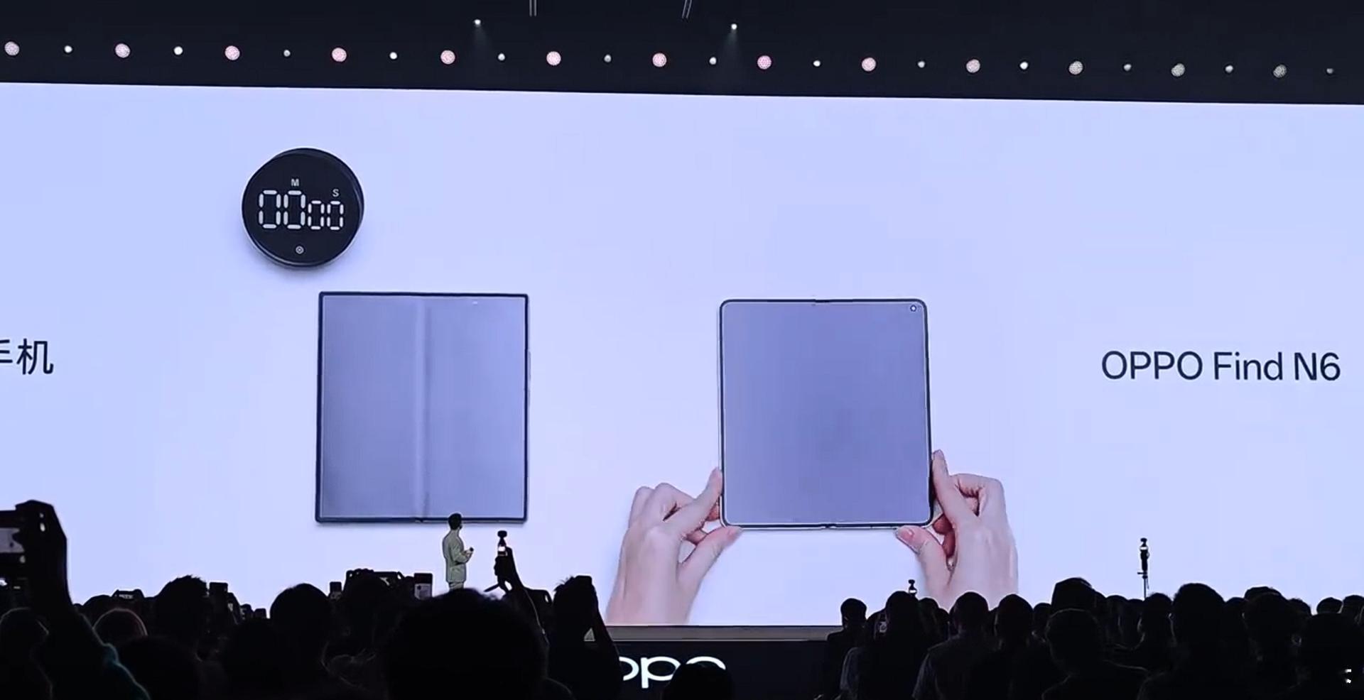 OPPO Find N6是拿三星折叠屏进行对比,没有和国产品牌对比,前几天怎么还打起来了?OPPO发布会最平整折叠屏OPPOFindN6全球首发