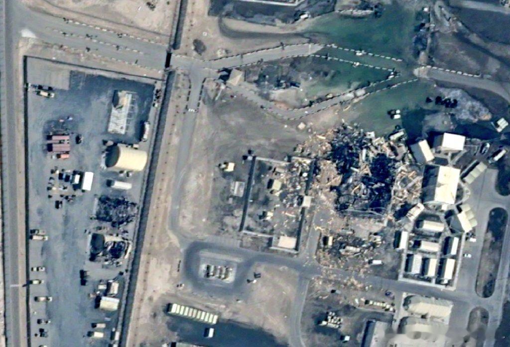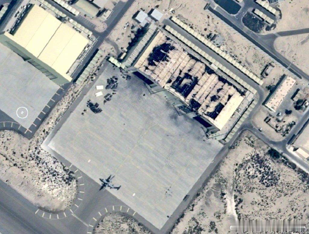 多处美军飞机/无人机掩体、机库、仓库以及部队营房被击中,其中一些受损严重,另一些则被完全摧毁。