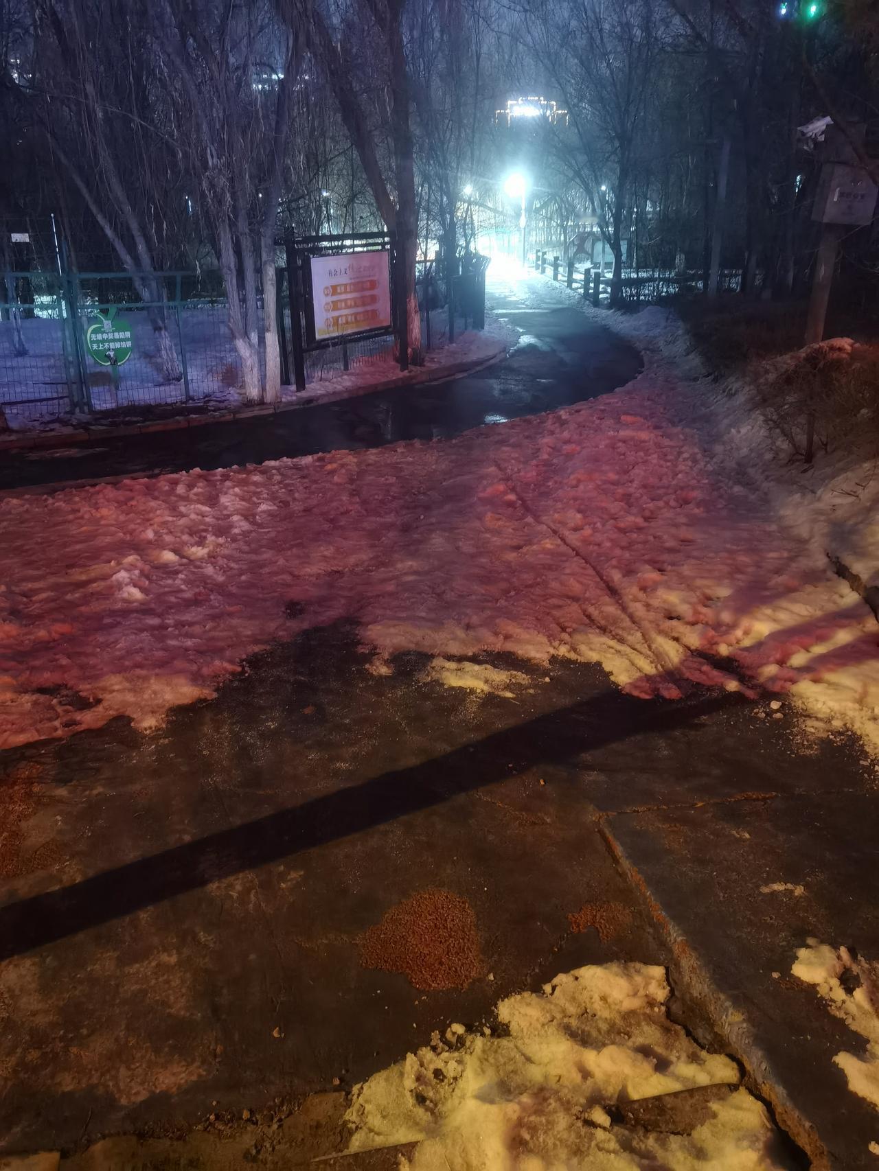 三月里,雪化了,一到晚上,就有冻住了,积雪的路面丝滑的很,容易摔跤,注意点走路北
