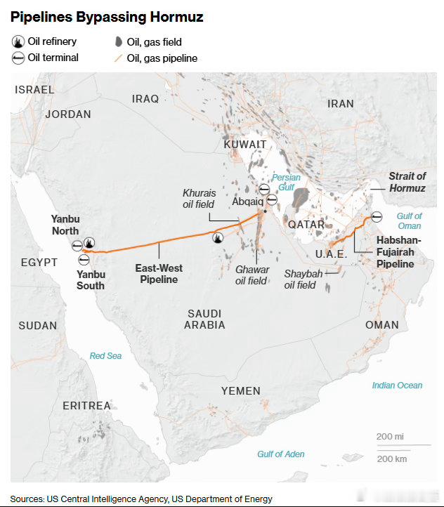 沙特的输油管道,可以部分解决运油的问题,但没有任何现存基础设施,可以解决化工原料出波斯湾的问题