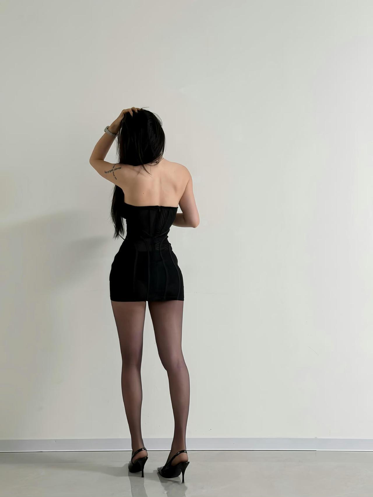 穿点黑 鱼骨抹胸裙