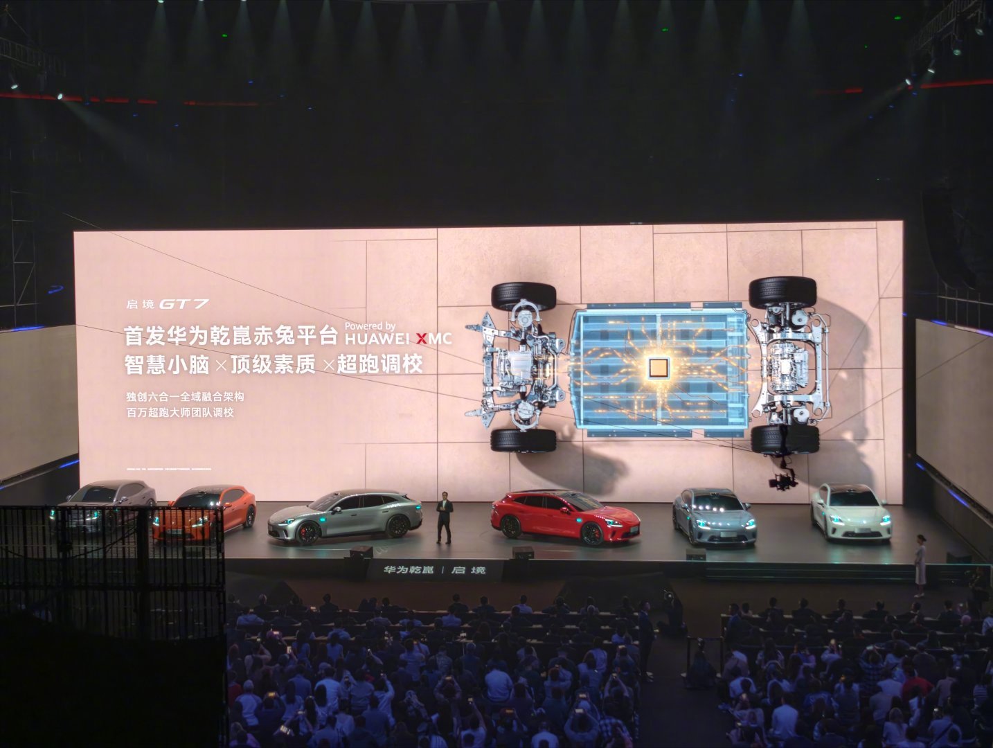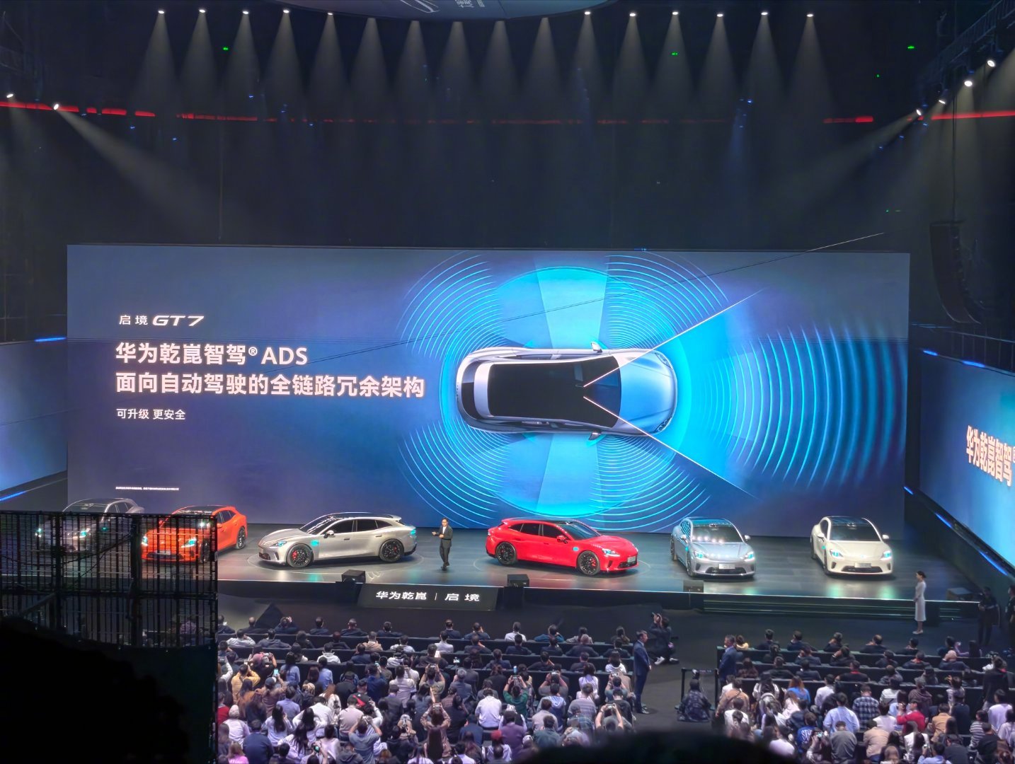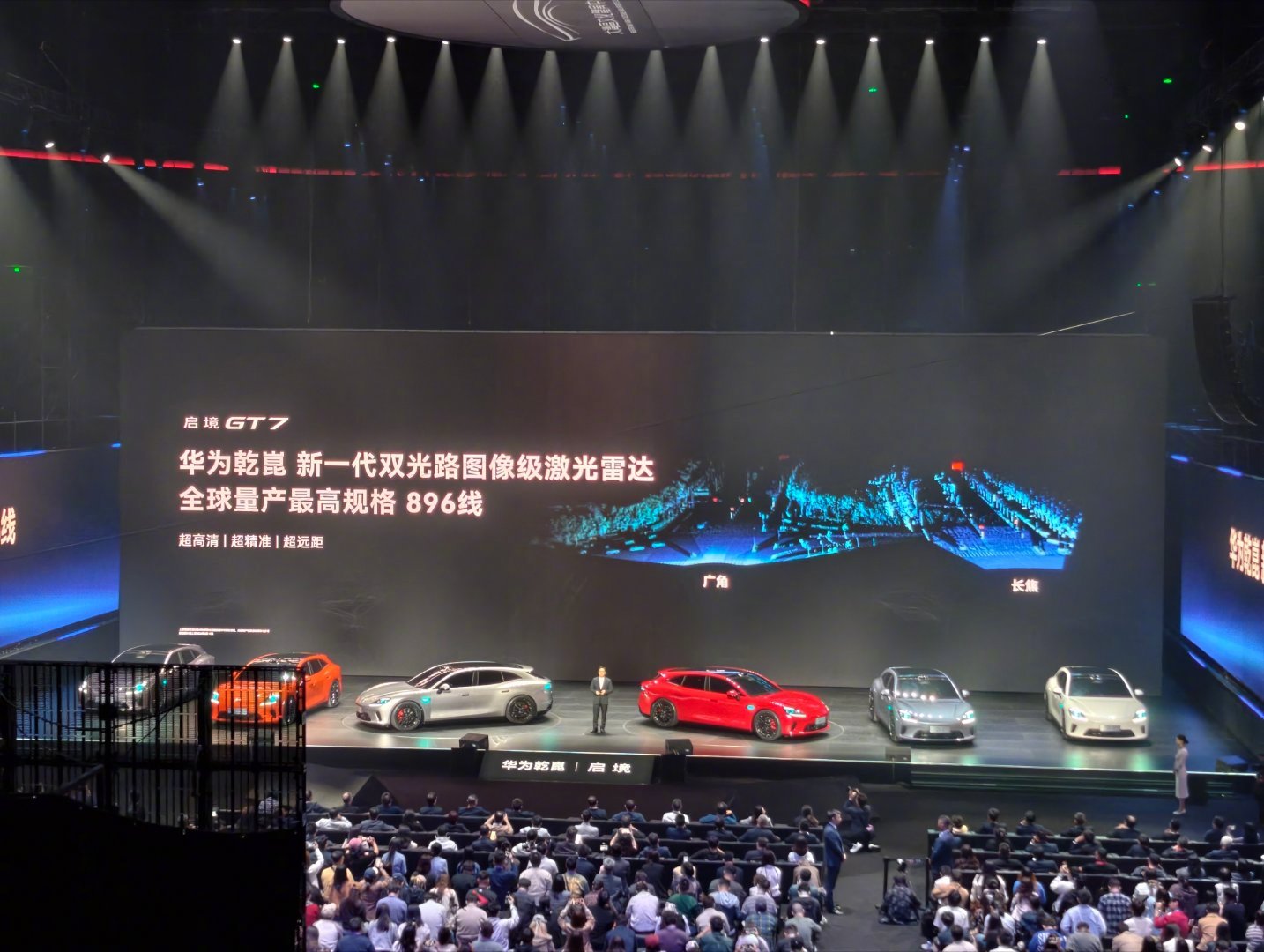 华为乾崑新一代896线双光路图像级激光雷达,华为乾崑智驾ADS,首创HUAWEISOUNDAI交互式星环散射体,首发华为乾崑赤免平台,启境GT7是真猛呀!启境汽车华为乾崑新一代智能猎装启境汽车品牌发布会暨GT7首秀
