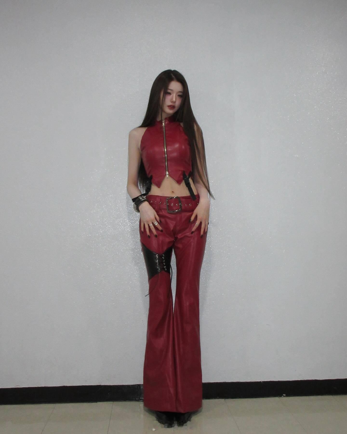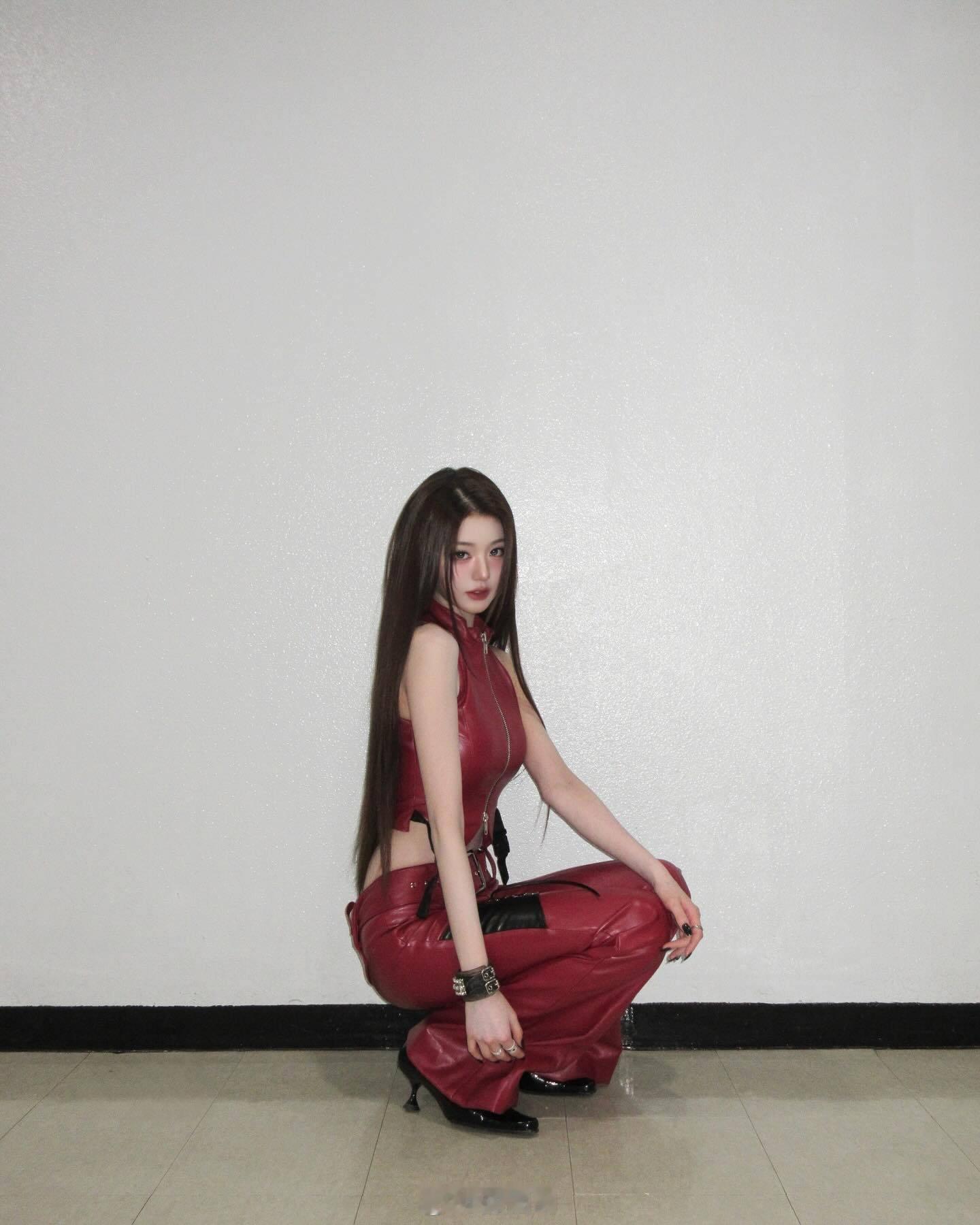 吴宣仪高清壁纸:金色抹胸短裙,红唇点缀俏丽甜美。吴宣仪