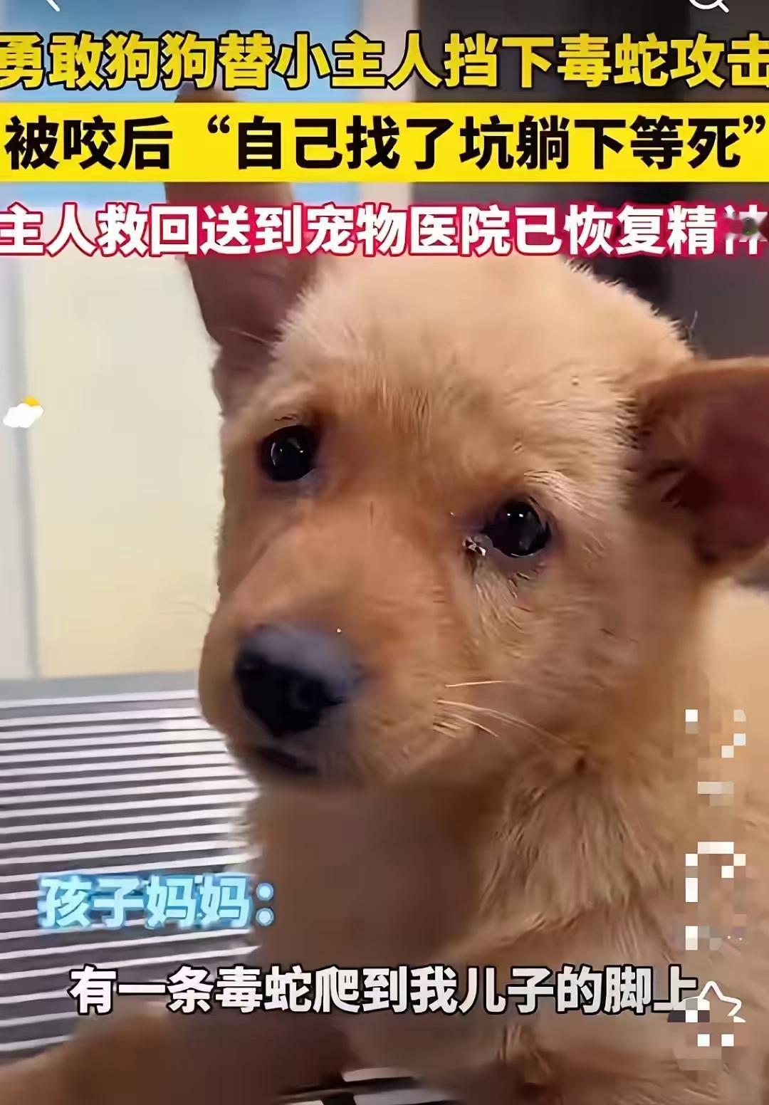 泪目了!一只狗狗为了保护小主人,自己被毒蛇咬了,居然自己找了个坑躺下等死。幸亏主人把它送去宠物医院救治,保住了生命! 当时,小主人带着狗狗去后山的草地玩,突然一条毒蛇爬到了他的脚上,情况十分危险,狗狗想都没想直接冲上去咬毒蛇,想把它驱赶。 幸好蛇被狗狗成功赶走了,可它也被蛇咬了,回去后小主人把这件事告诉了父母,他们既感动又揪心,而且狗狗还不见了。 谁能想到,这只懂事到戳心的毛孩子,察觉到毒液在身体里蔓延时,压根没想过向家人求救,反倒拼着最后力气躲起来。被毒蛇咬伤的后腿越来越僵硬,走路都站不稳,它却强忍着剧痛,绕开家人的视线,一瘸一拐往后山走。平时跟着小主人撒欢跑跳,总觉得路不够长,此刻每一步都疼得浑身发颤,它却连头都没回一下。 小主人攥着父母的手哭得直抽气,反复说着狗狗是为了救自己才受伤的,孩子的眼泪落在大人手上,又烫又让人心疼。夫妻俩来不及多想,抓上车钥匙就往后山赶,天色渐暗的后山静得吓人,他们扯着嗓子喊狗狗的名字,喊到嗓子发哑,也没等到那声熟悉的回应。 孩子蹲在草丛里胡乱翻找,小手被草叶划出血痕也浑然不觉,就在一家人快要崩溃的时候,爸爸在老槐树下发现了那个小土坑。狗狗安安静静卧在坑里,脑袋贴着地面,原本顺滑的毛发塌成一团,嘴角泛着白沫,连睁开眼睛的力气都没有。那坑是它用爪子一点点刨出来的,它只想找个安静的地方离开,怕小主人难过,更怕成为家里的负担。 爸爸抱起狗狗的瞬间,摸到它冰凉的身体,整个人都愣在原地,妈妈抱着孩子当场就哭出了声。他们踩着油门往宠物医院赶,医生检查完直呼万幸,再晚片刻,蛇毒就会侵蚀脏器,再也救不回来。注射抗毒血清、静脉排毒、24小时监护,四个小时的紧急抢救,狗狗的呼吸才慢慢恢复平稳。 住院的日子里,狗狗只要睁开眼,就死死盯着病房门口,一看到小主人的身影,就算浑身没力气,也会轻轻摇尾巴,用脑袋蹭孩子的手心。它不会说疼,不会说委屈,只会用最笨拙的方式,粘着自己最爱的家人。 总有人觉得狗狗只是宠物,没必要倾注太多感情。这只狗狗却用命告诉所有人,它从不是供人消遣的小动物,而是把主人当作全部生命的家人。明知道对上毒蛇凶多吉少,它还是毫不犹豫挡在小主人身前,清楚自己重伤难愈,就悄悄离开不拖累任何人,这份不加一丝杂质的忠诚,比很多人心都要纯粹。 我们总说动物不懂人情世故,可这些不会说话的小生命,藏着最滚烫的真心。它们的一生只有十几年,只能陪我们走人生的一小段路,却把所有的勇敢和温柔,全都给了认定的主人。这一场以命护主的守护,早就打破了宠物与主人的界限,成了双向奔赴、生死相依的牵挂。 现在狗狗已经完全康复,每天依旧跟在小主人身边,寸步不离。主人也坦言,当年狗狗用命护住孩子,往后的日子,一家人会用一辈子好好守护它。 各位读者你们怎么看?欢迎在评论区讨论。