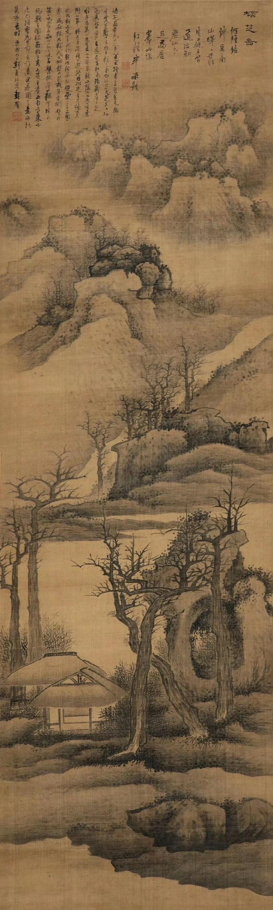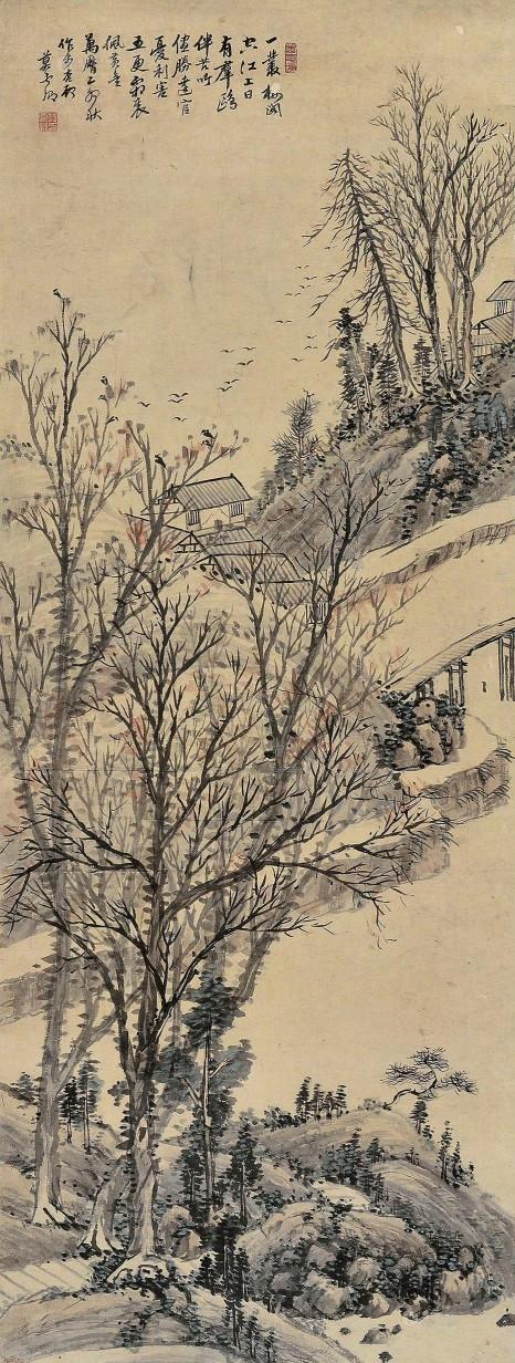 清.黄溱《山水图》 清.沈振麟《洪崖仙图》 清.叶六隆《蜀峰栈道图》 龚 贤《培芝图》 黄宾虹《雁荡三折瀑》 明 徐渭 《大写意》 明 徐渭 《花竹轴》 明 莫是龙《秋山霜屋图》 王翚《松壑隐居》