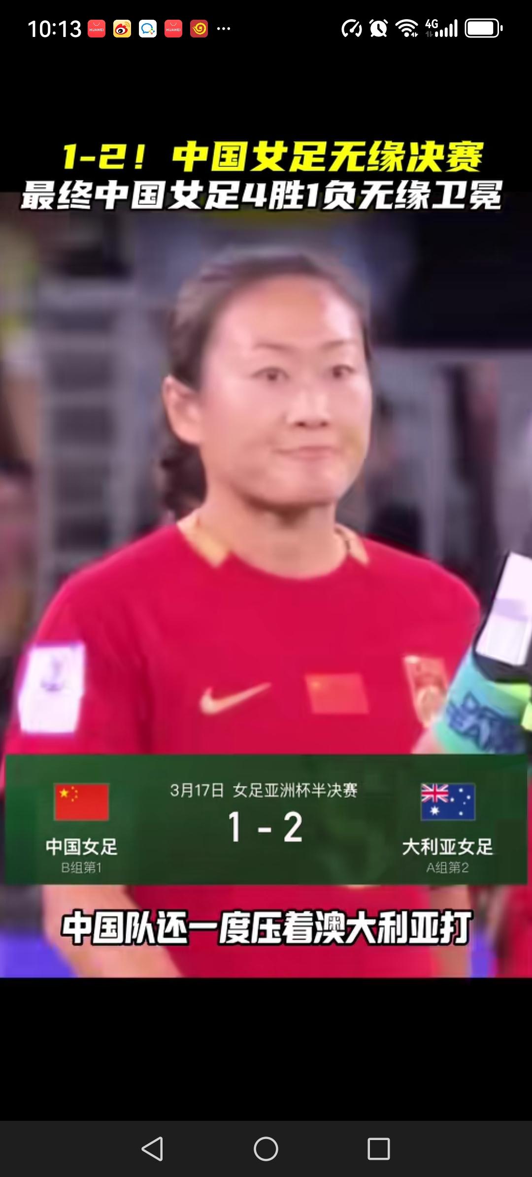 中国女足1:2不敌澳大利亚,无缘亚洲杯决赛。从整场比赛来看,中国队输的一点也不冤,技不如人。澳大利亚个人基本功要明显强于我们。她们能够打出流畅的配合,撕开我们的防线。我们踢得虽然也非常卖力,但罕有犀利的进攻和流畅的配合,输球也就在情理之中了,中国队还有一个短板就是守门员,两个丢球与她都有很大的关系。 中国女足任重道远,加油吧。