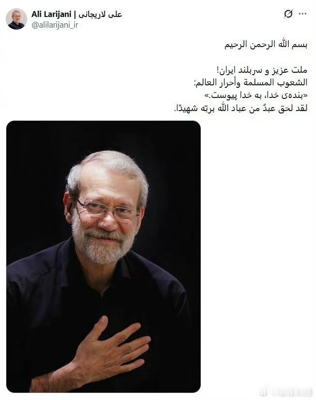 根据央视新闻等媒体援引伊朗官方消息,伊朗总统已证实拉里贾尼在3月17日的空袭中身亡。此前以色列方面也已宣布了这一消息。虽然事发当日其社交媒体账号曾发布悼词引发猜测,但目前多方信息已确认其遇难。