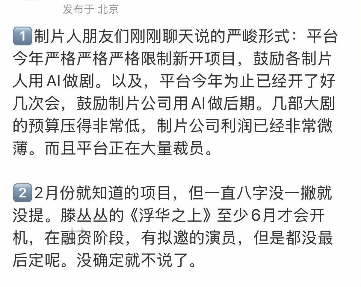 平台鼓励用AI做剧,甚至男二以下演员都不用真人了。